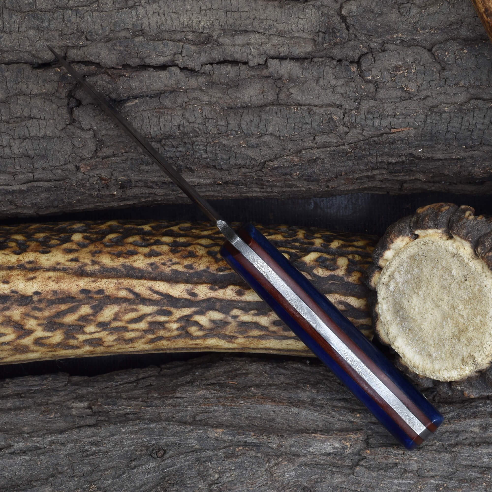 Blue Dyed Cattle Bone with Micarta Fiber Liner |