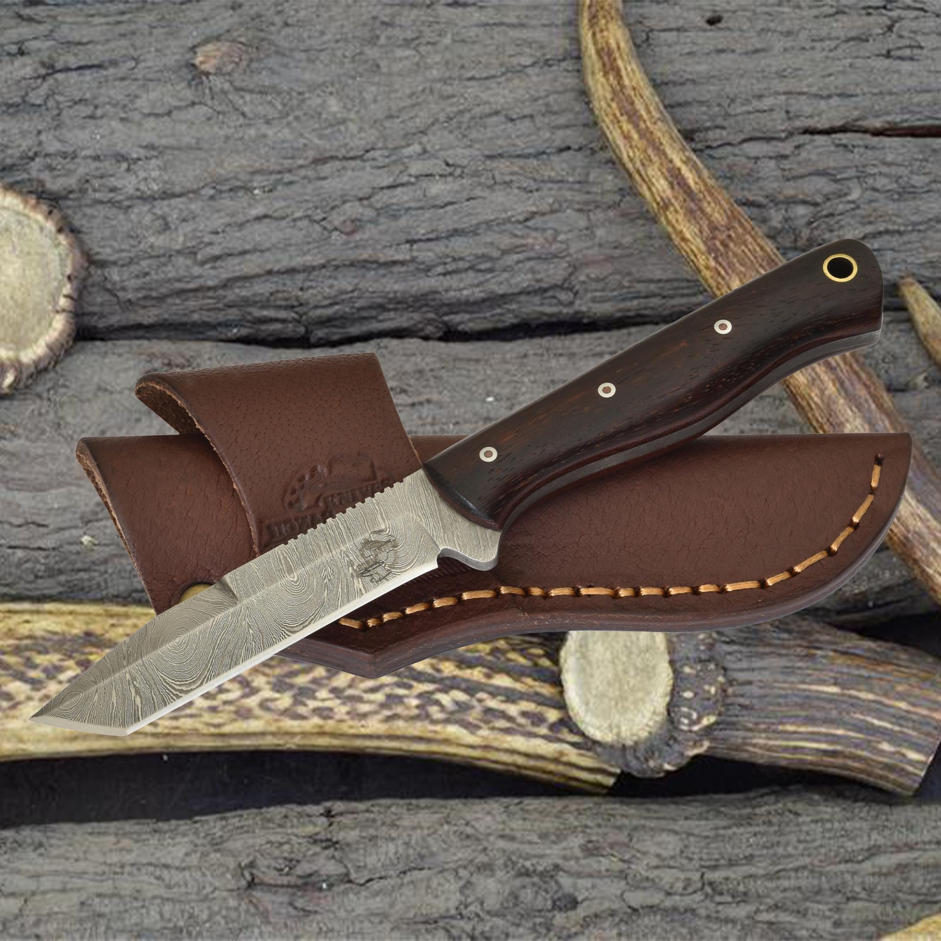 A dependable choice for carry enthusiasts, this knife excels as a tanto-style Damascus knife for EDC, a precise fixed blade utility knife for everyday use, and a stylish compact tactical knife with natural wood grip.