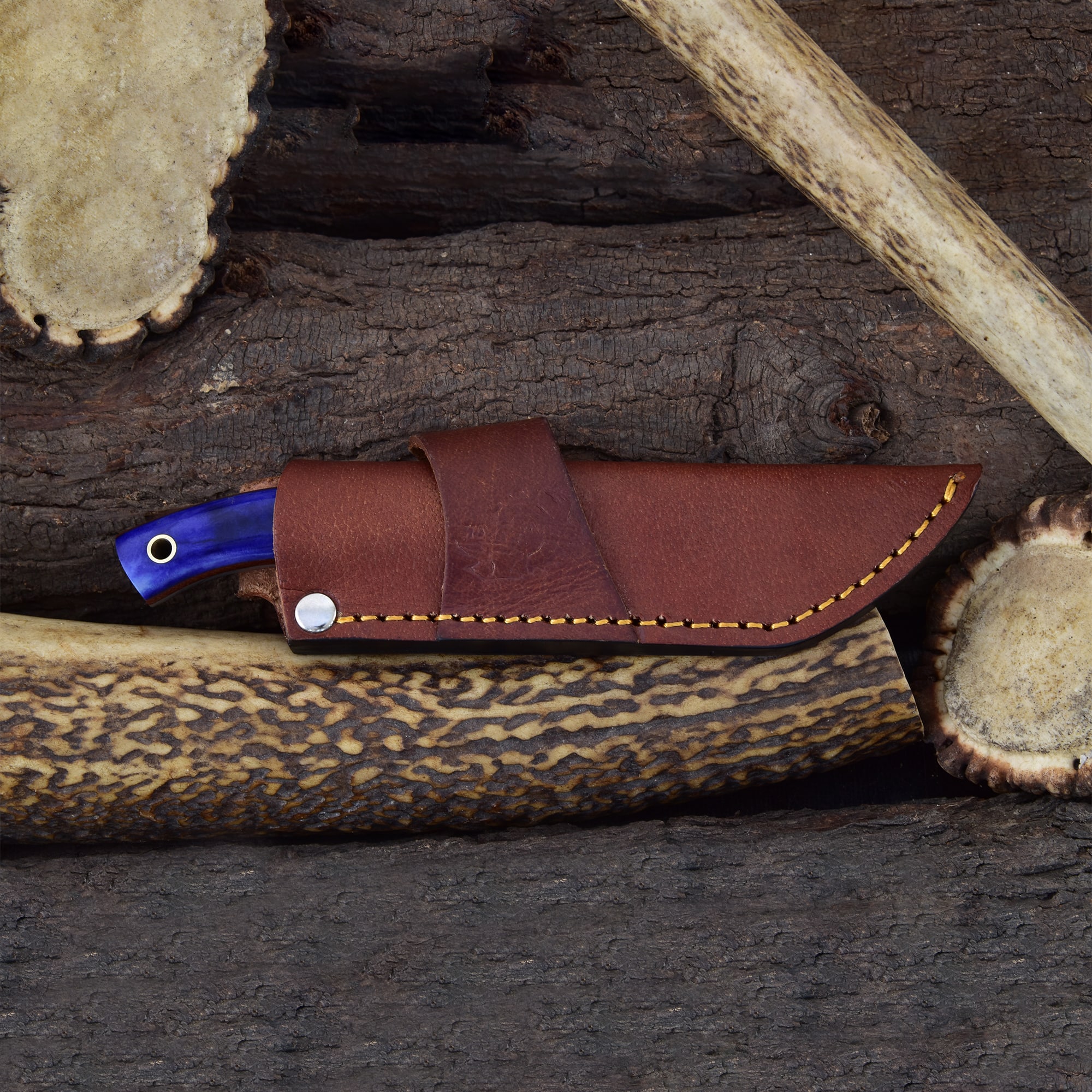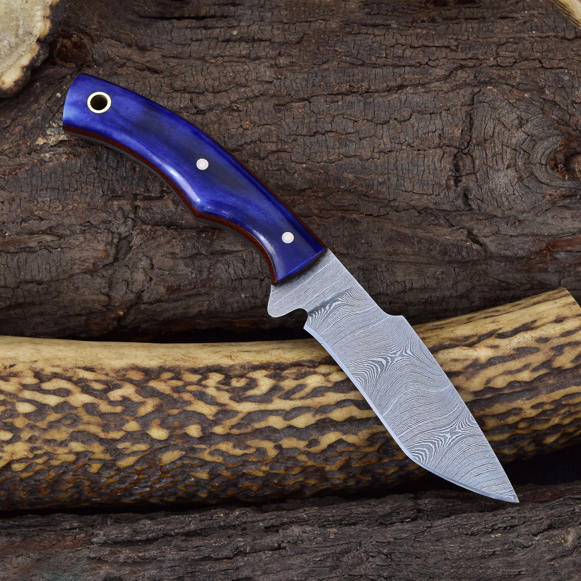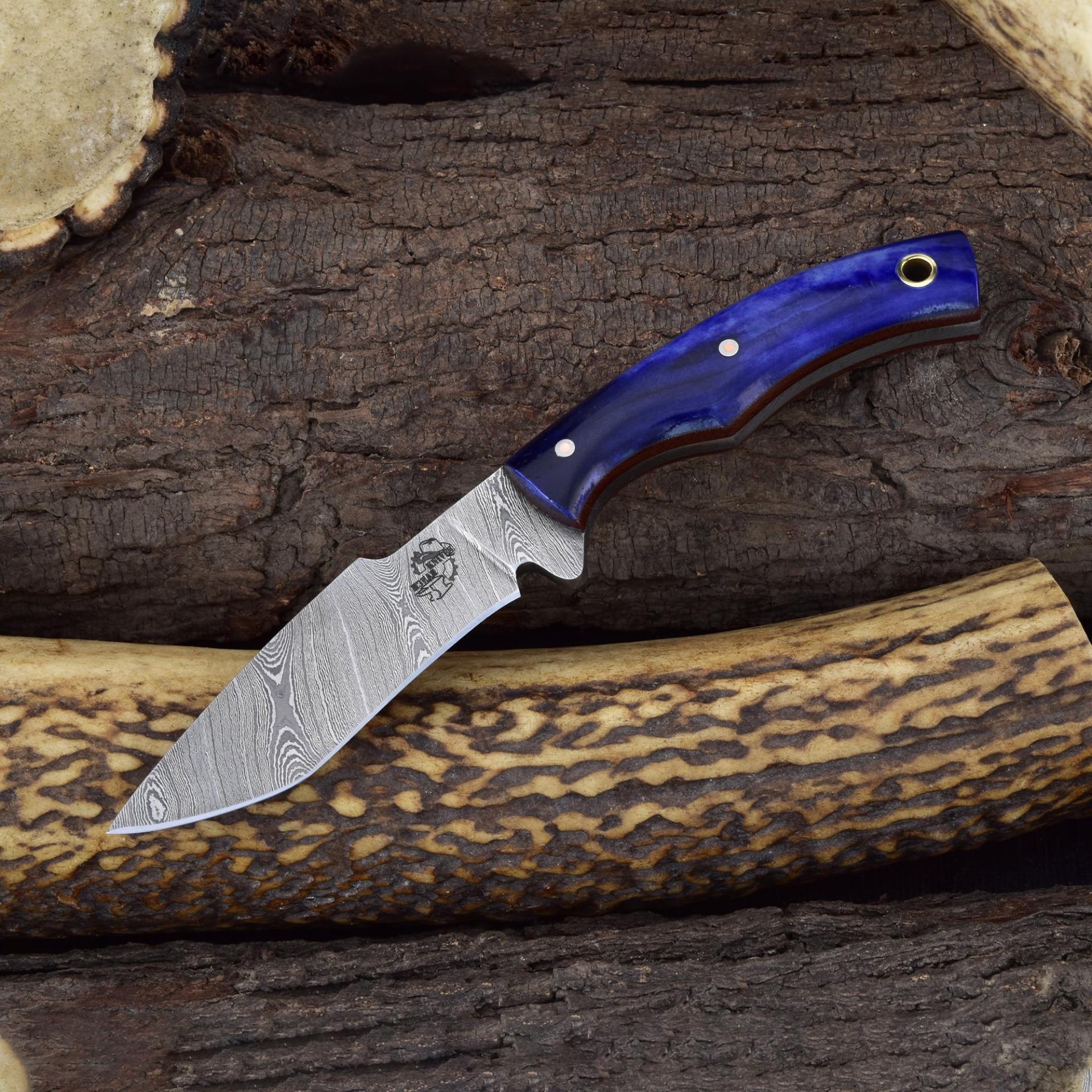 An ideal choice for daily use, this knife serves as a dependable fixed blade Damascus EDC tool, an elegant blue bone handle everyday carry knife, and a compact tactical blade for outdoor and urban environments.