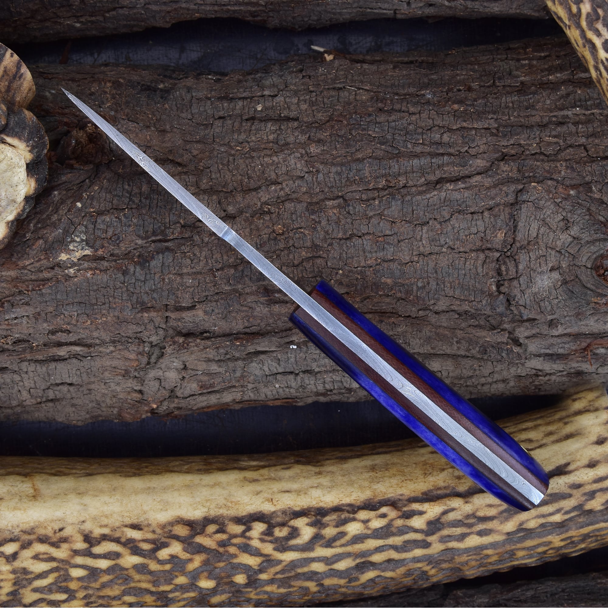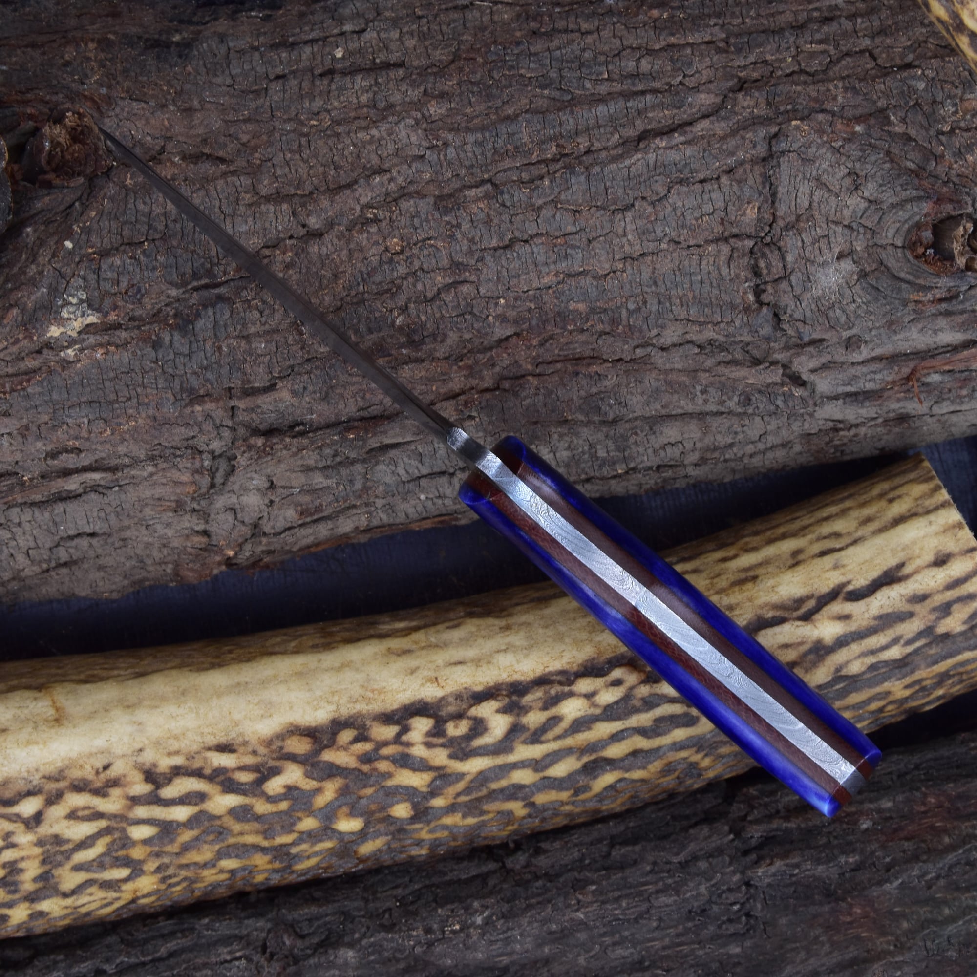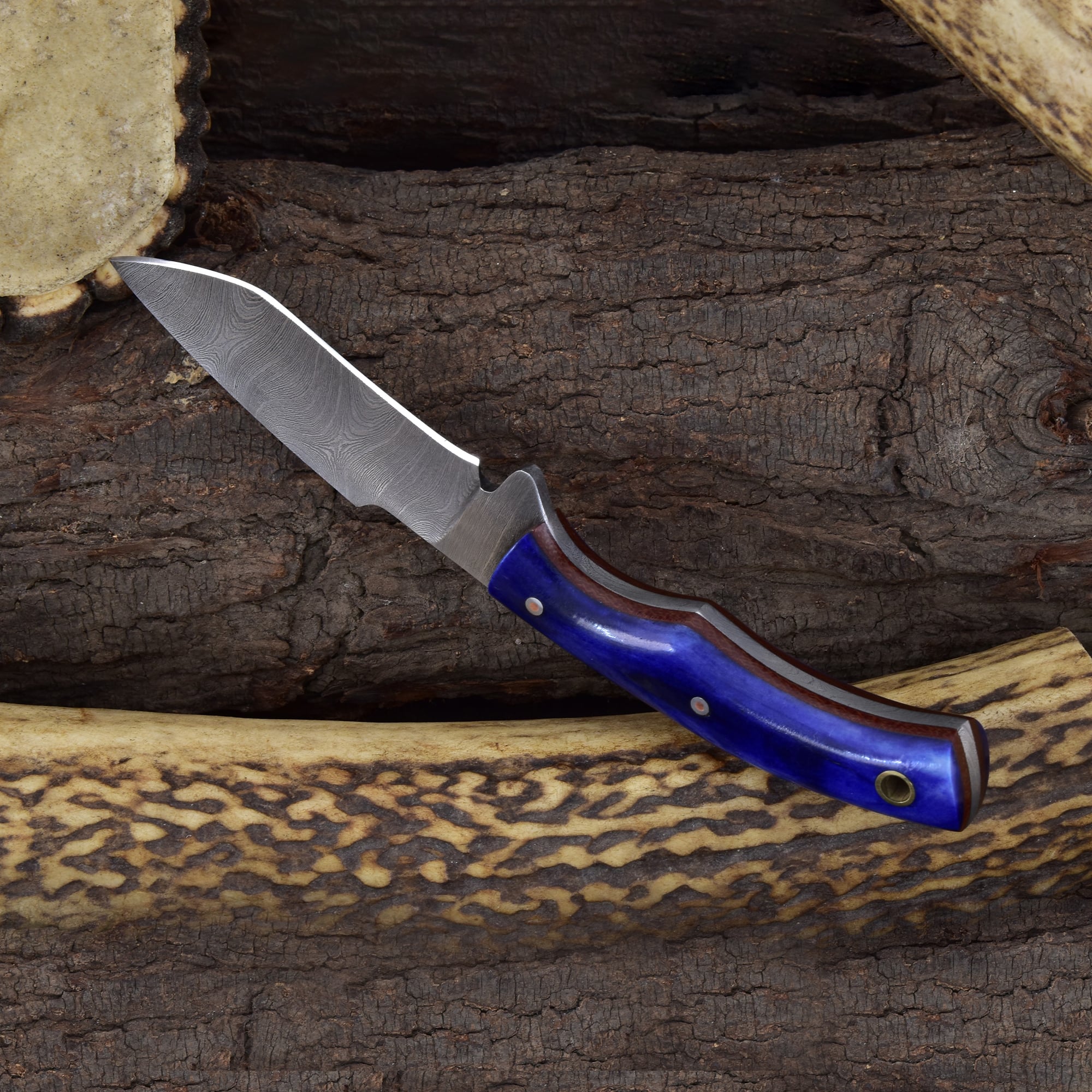 An ideal choice for daily use, this knife serves as a dependable fixed blade Damascus EDC tool, an elegant blue bone handle everyday carry knife, and a compact tactical blade for outdoor and urban environments.