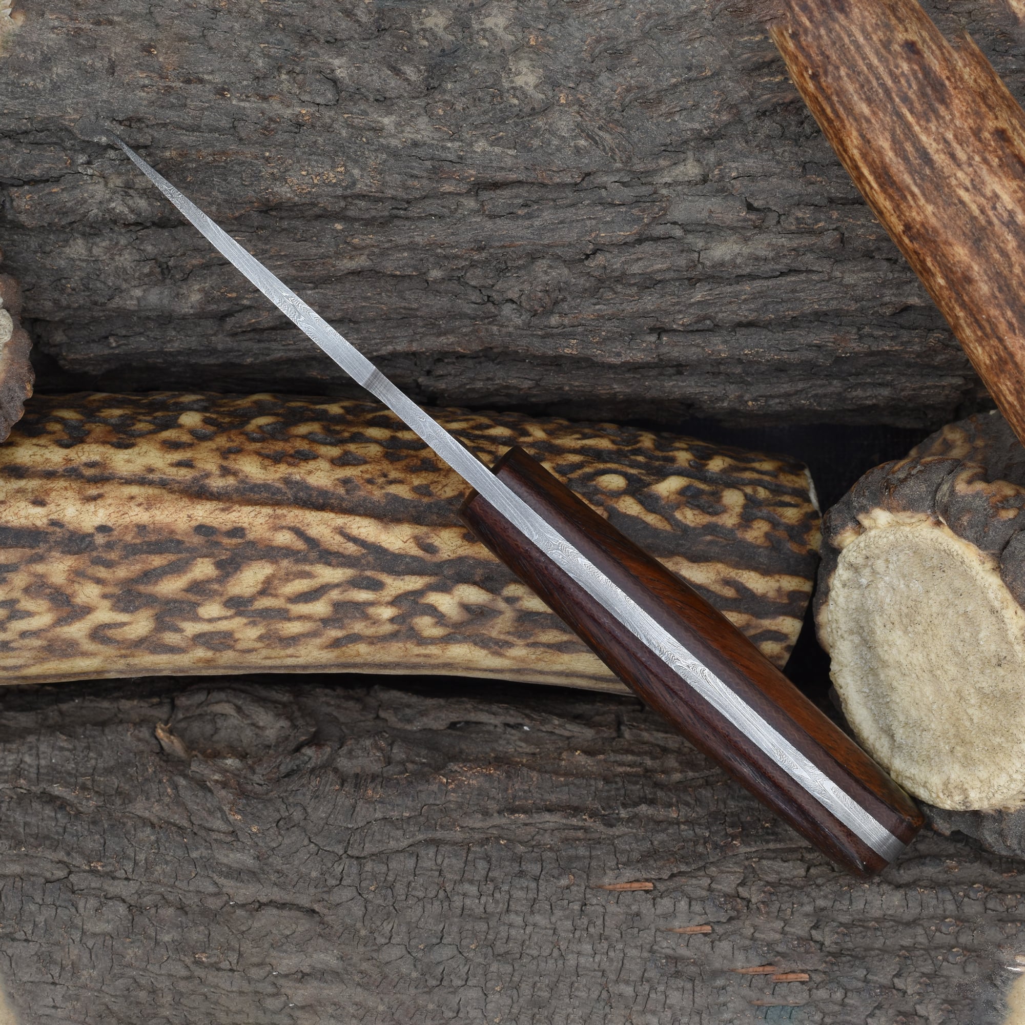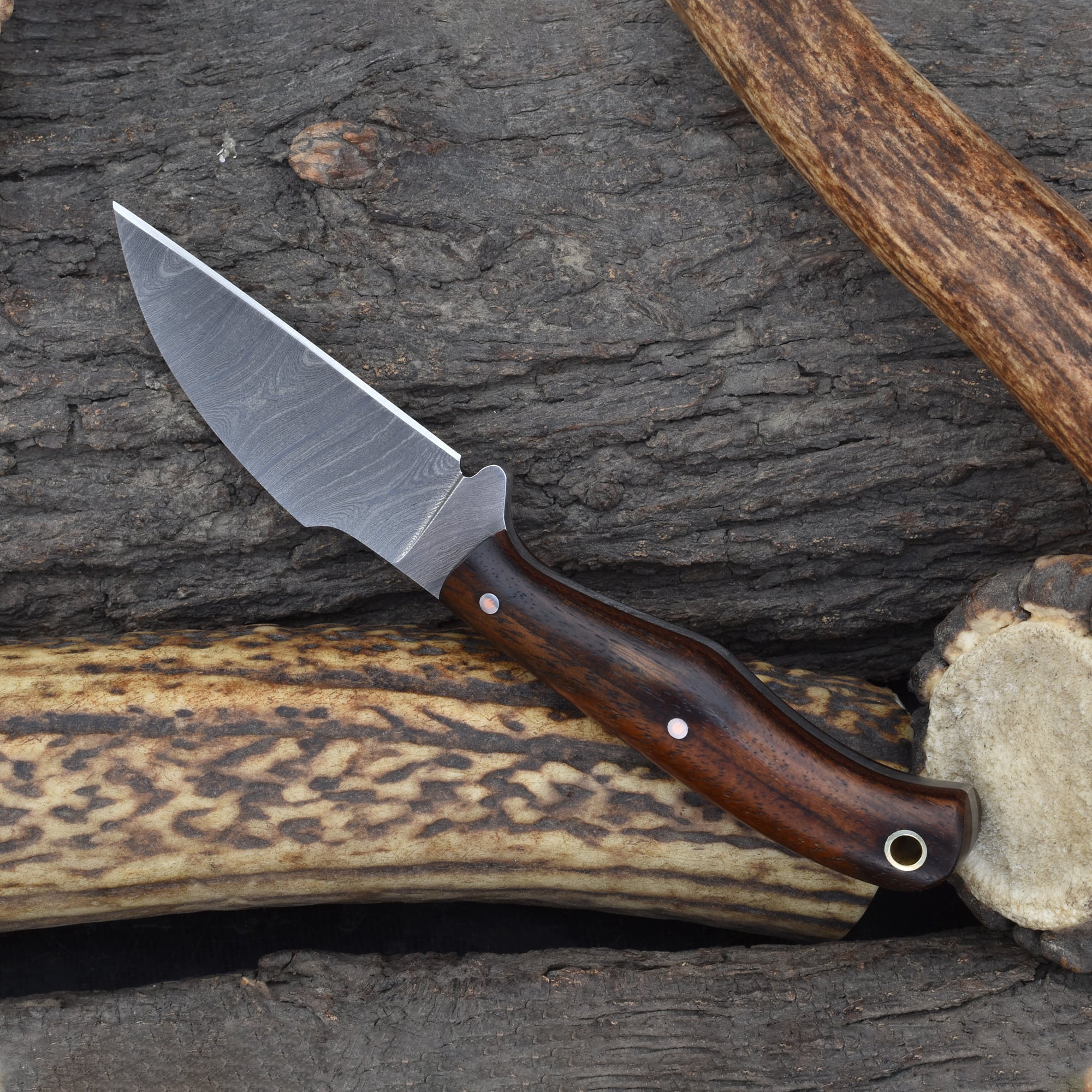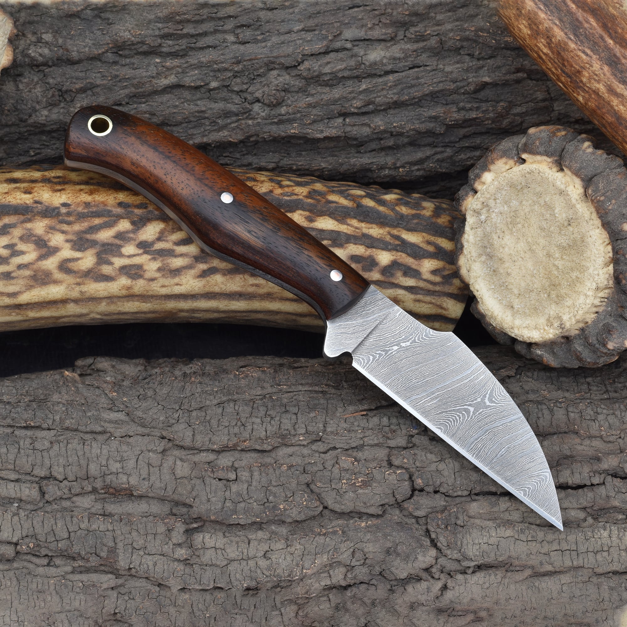 Knives Ranch Compact Damascus Steel Knife with Rosewood Handle
