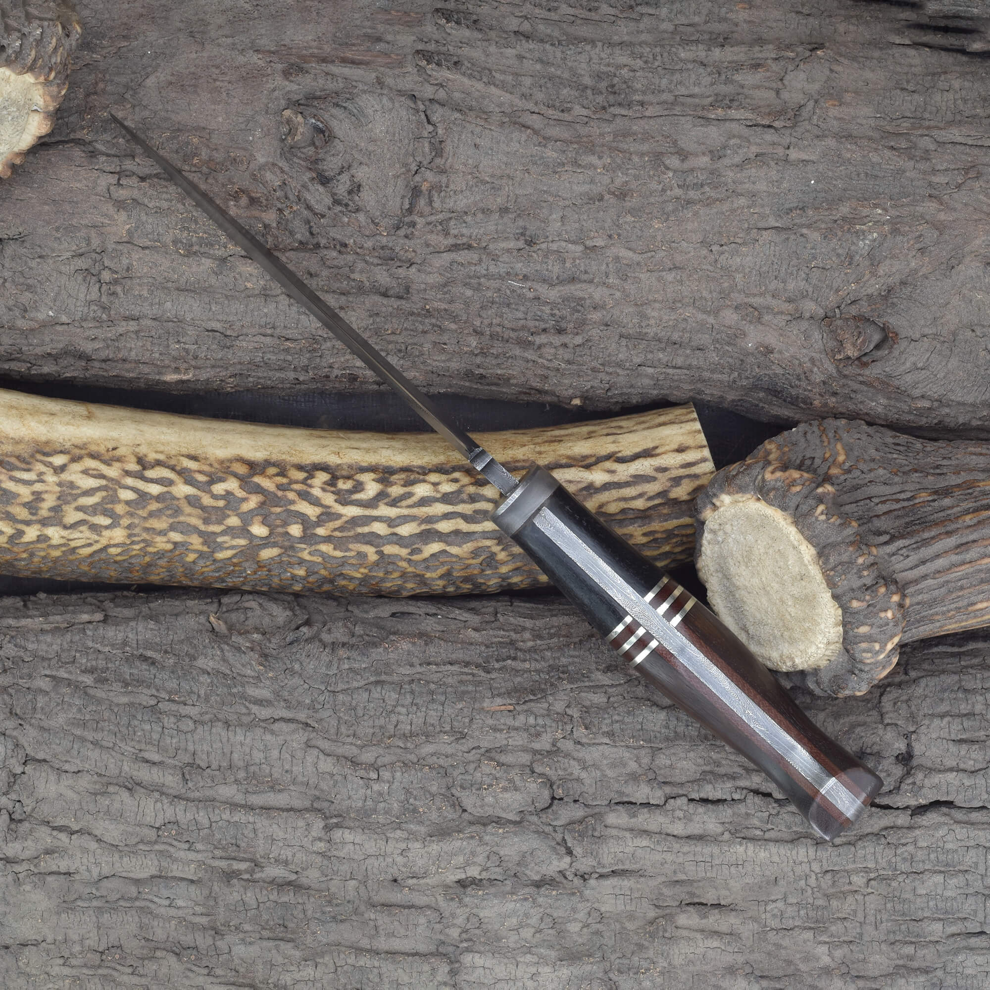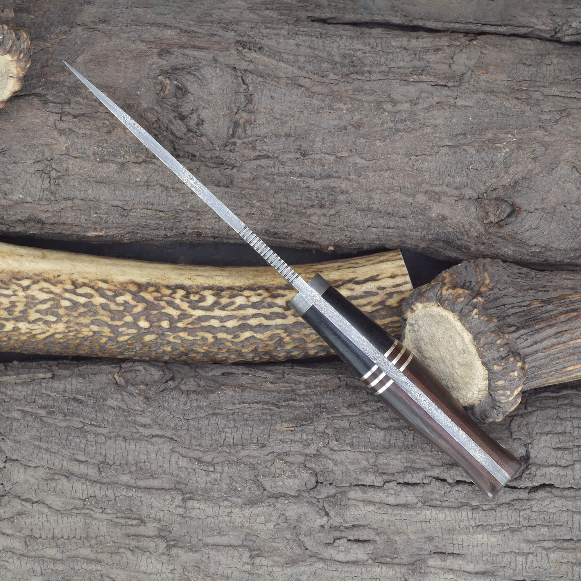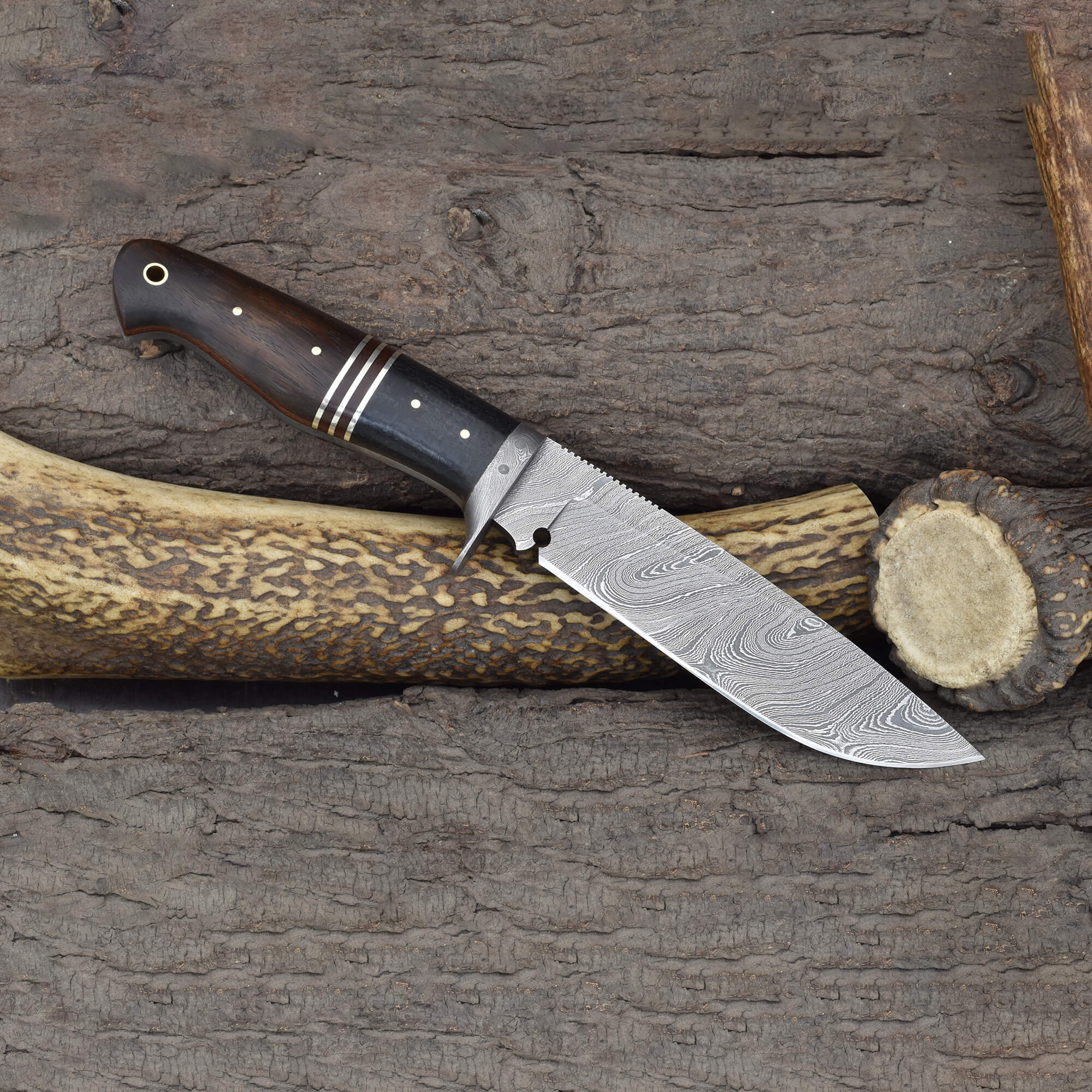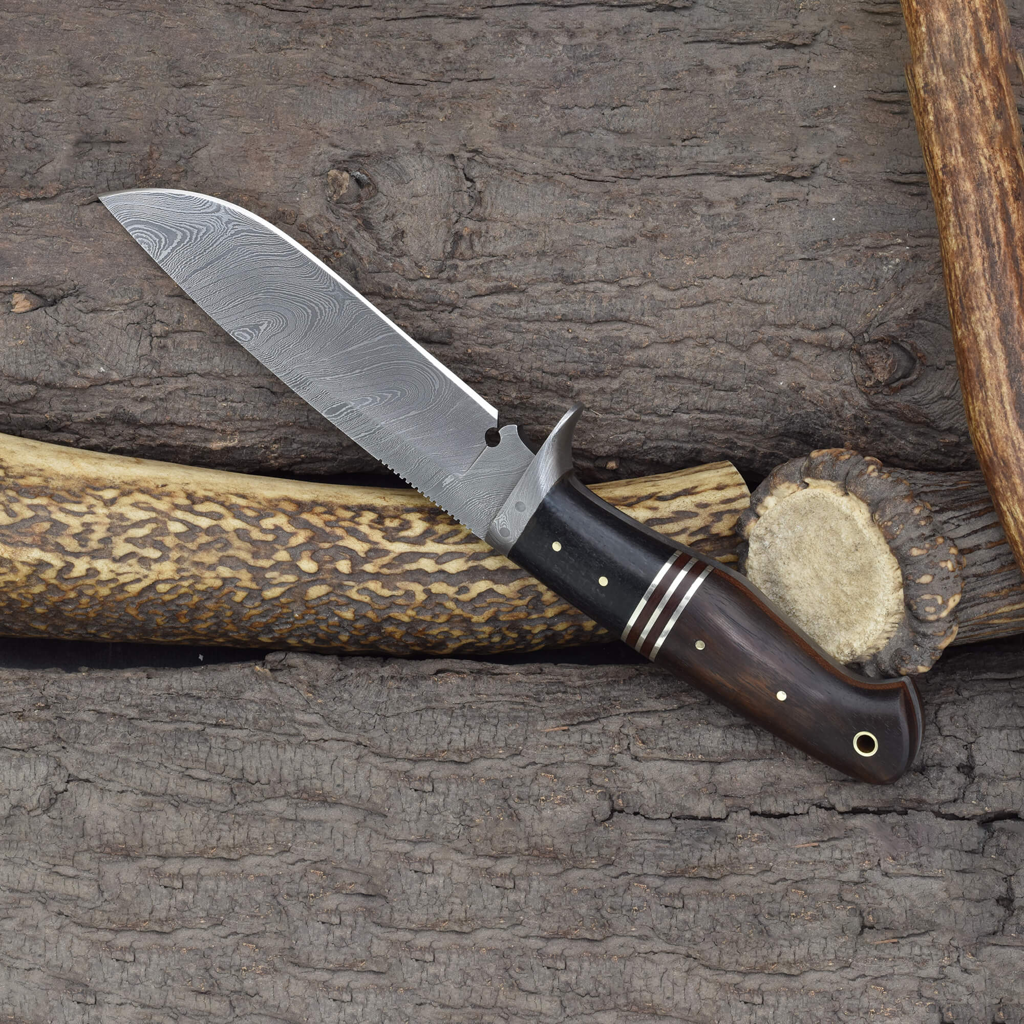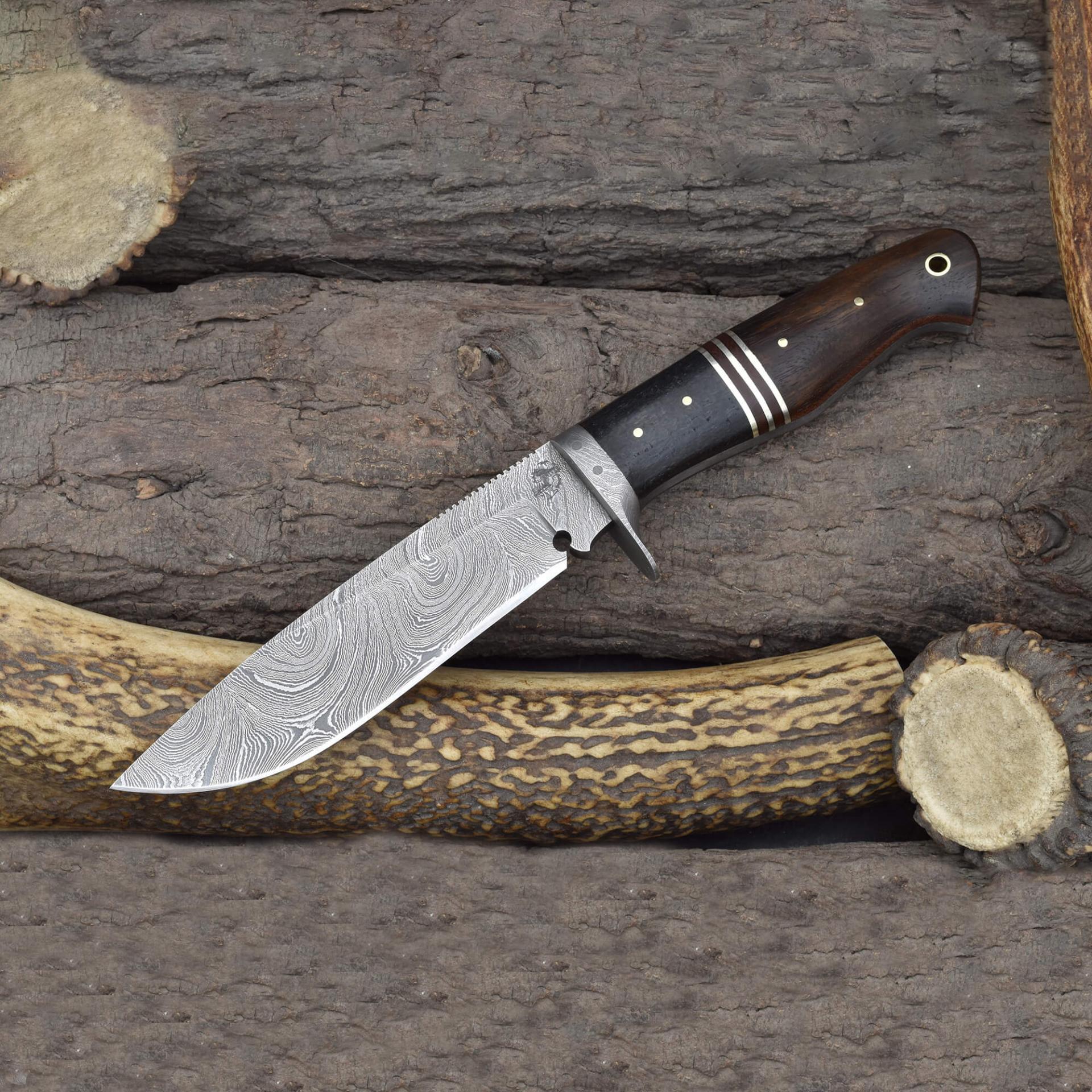 Knives Ranch Damascus Hunting Knife with Rosewood & Micarta