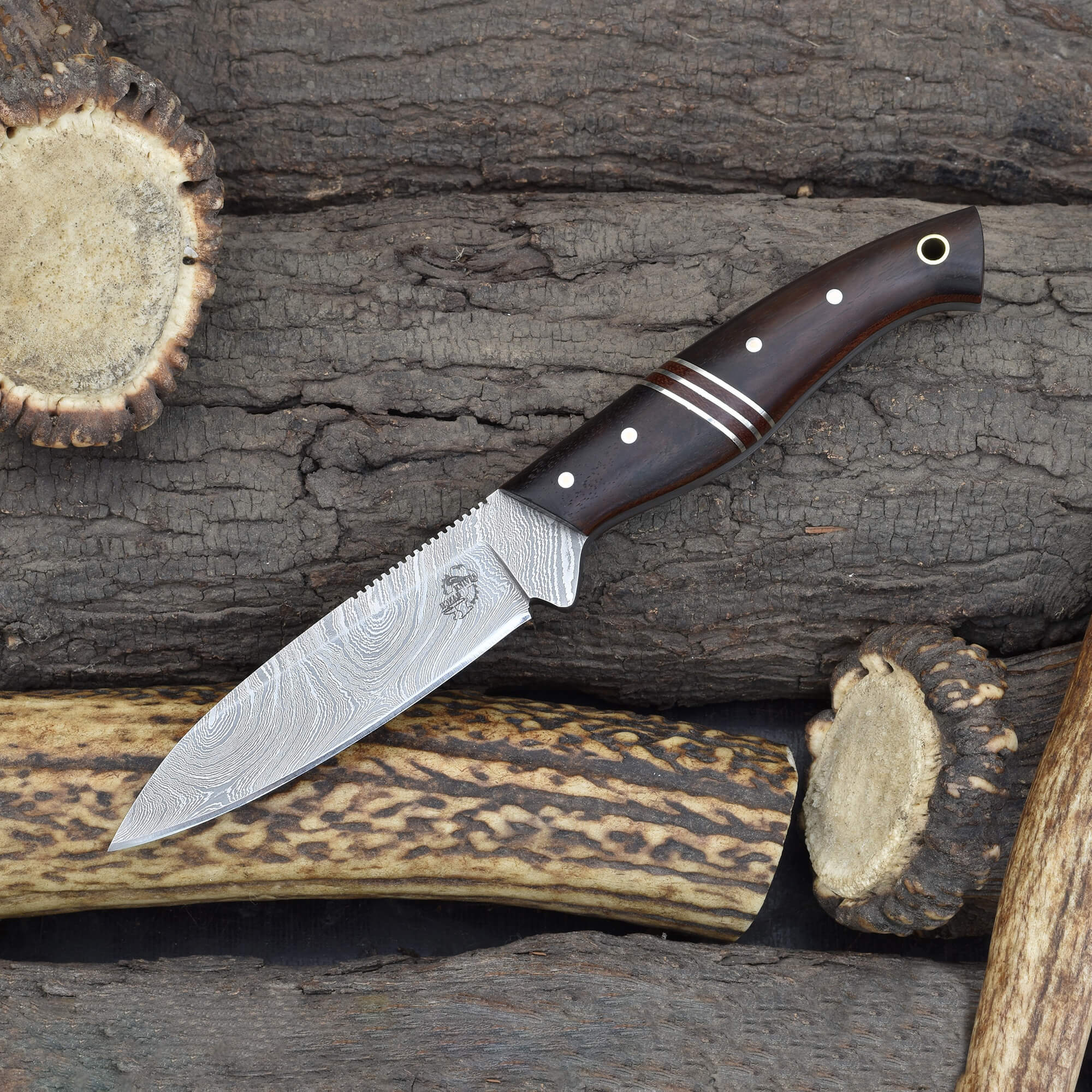 Knives Ranch Damascus Hunting Knife with Rosewood Accents