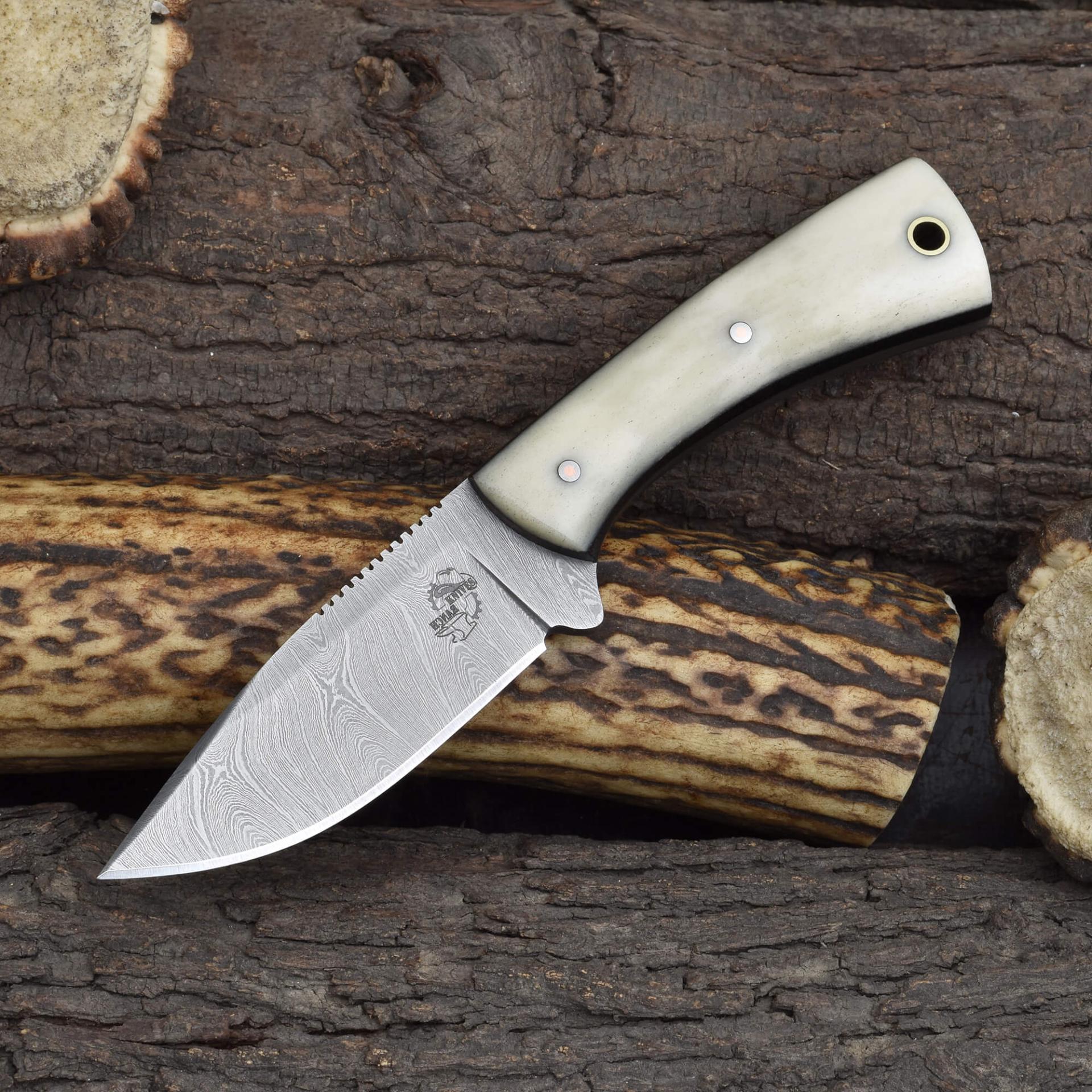 Knives Ranch Durable Damascus Steel Knife with Bone Handle