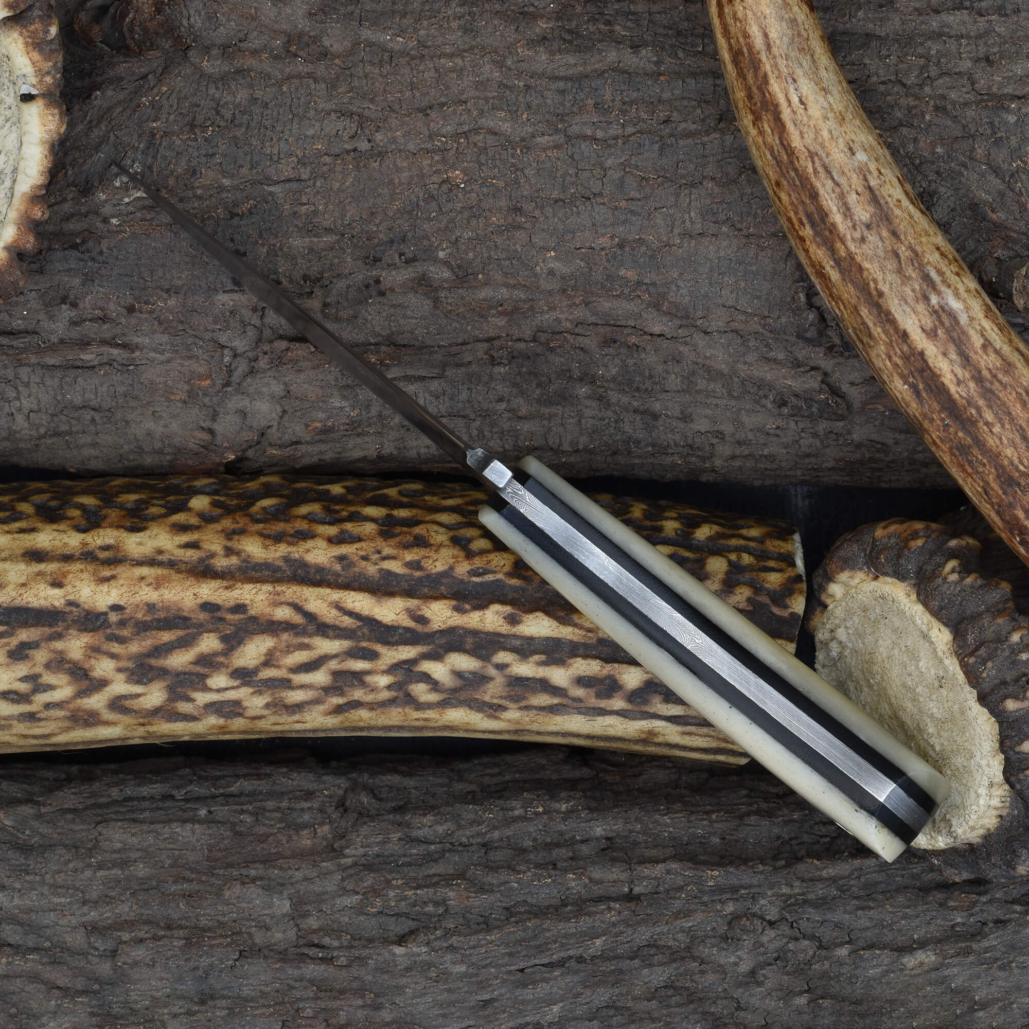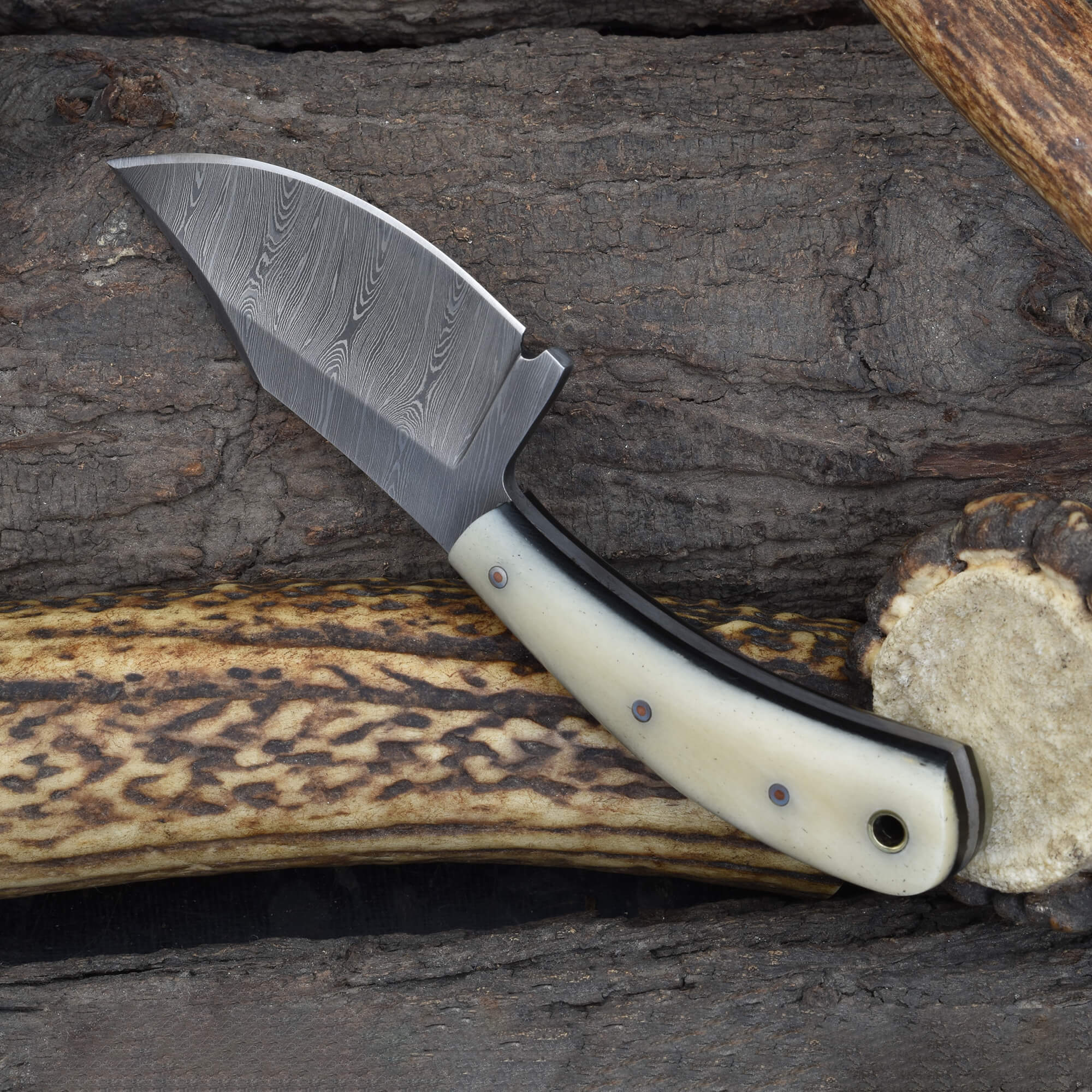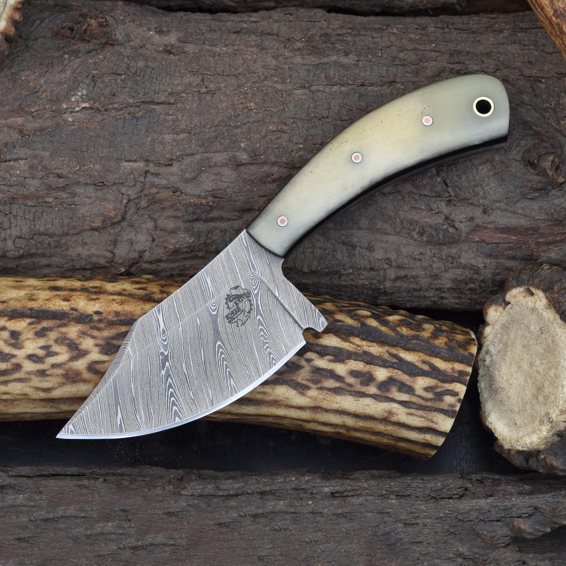 Knives Ranch Damascus Skinning Knife with Cattle Bone Handle