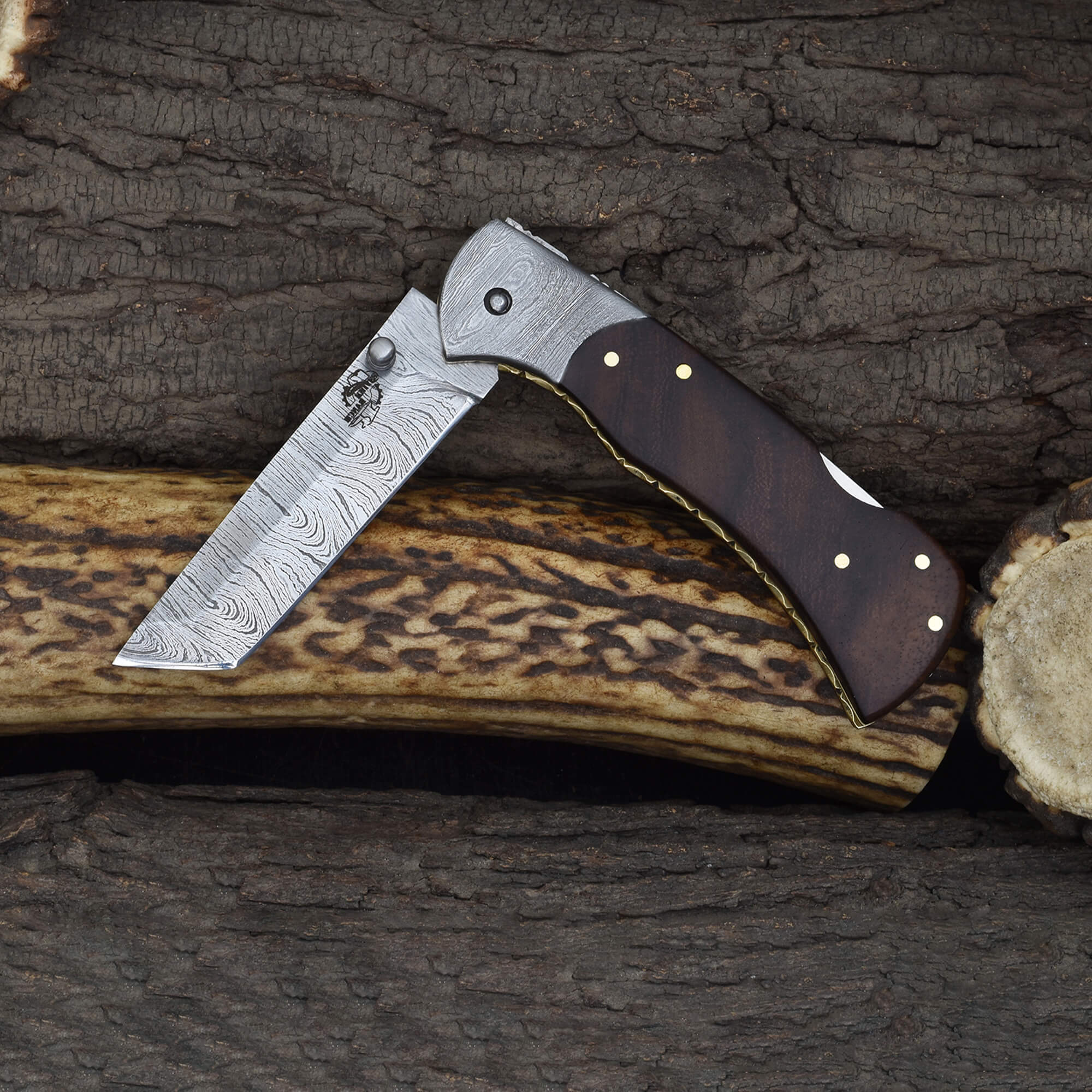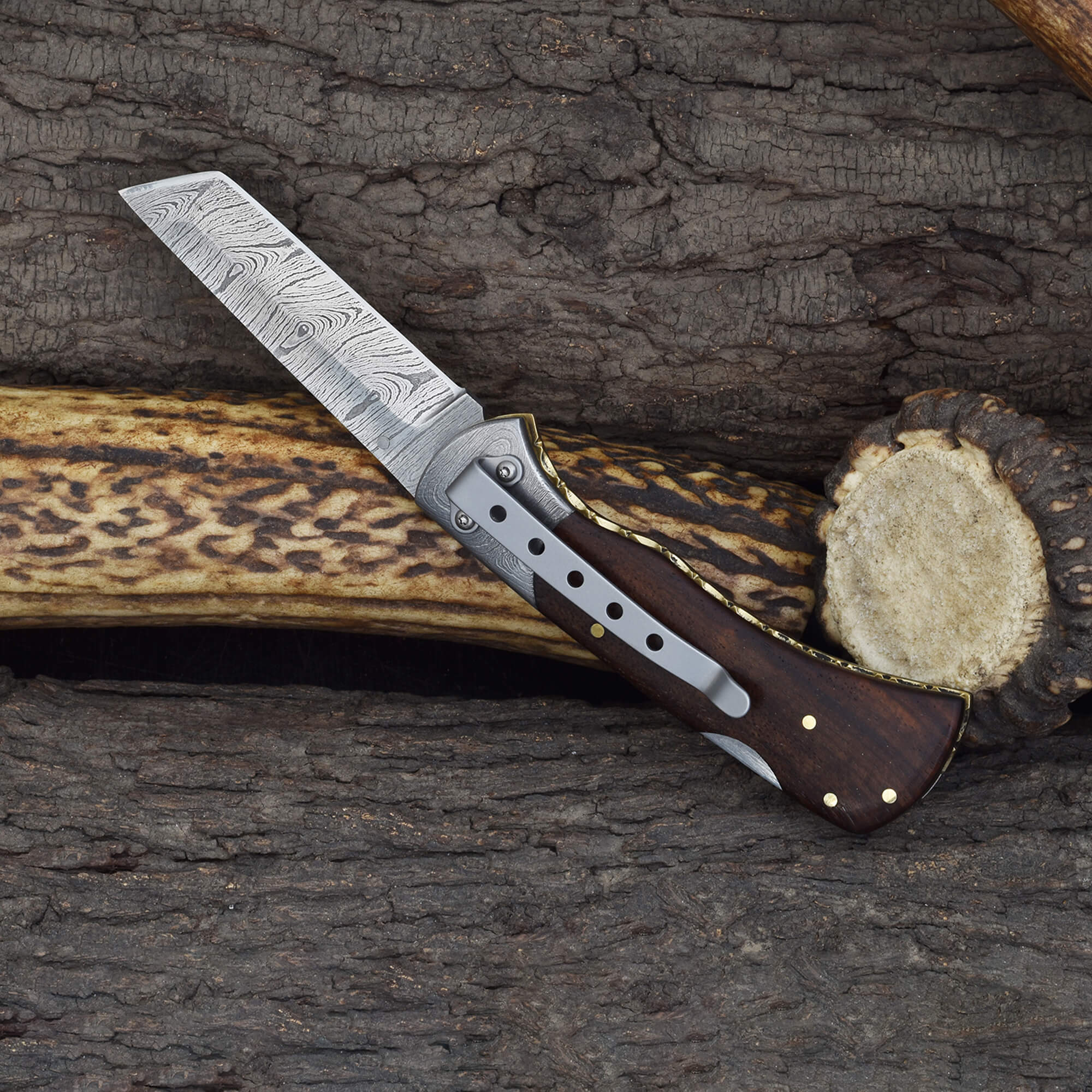 Knives Ranch Rosewood Damascus Folding Pocket Knife