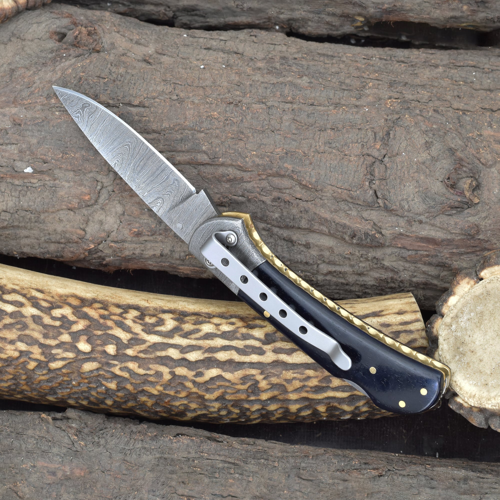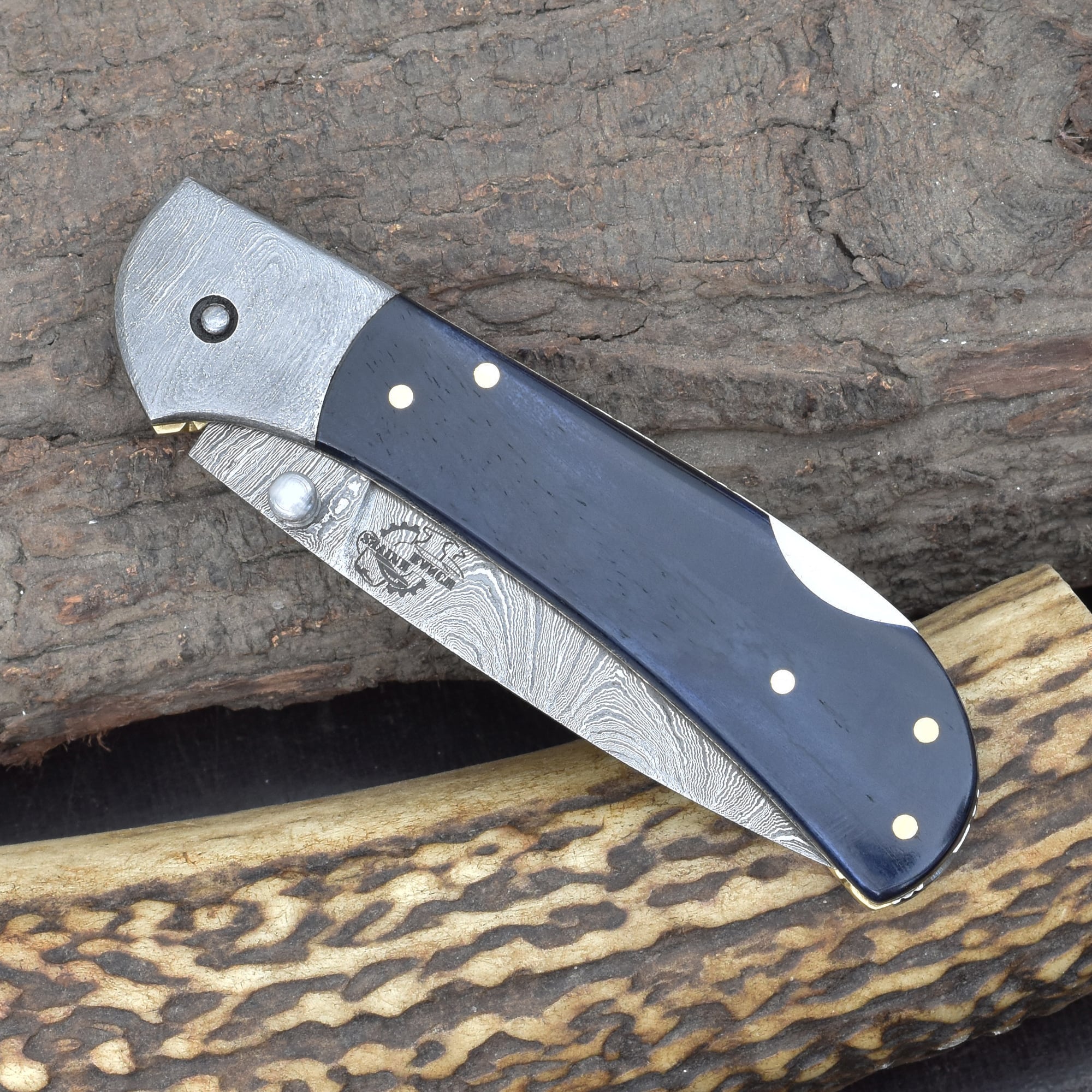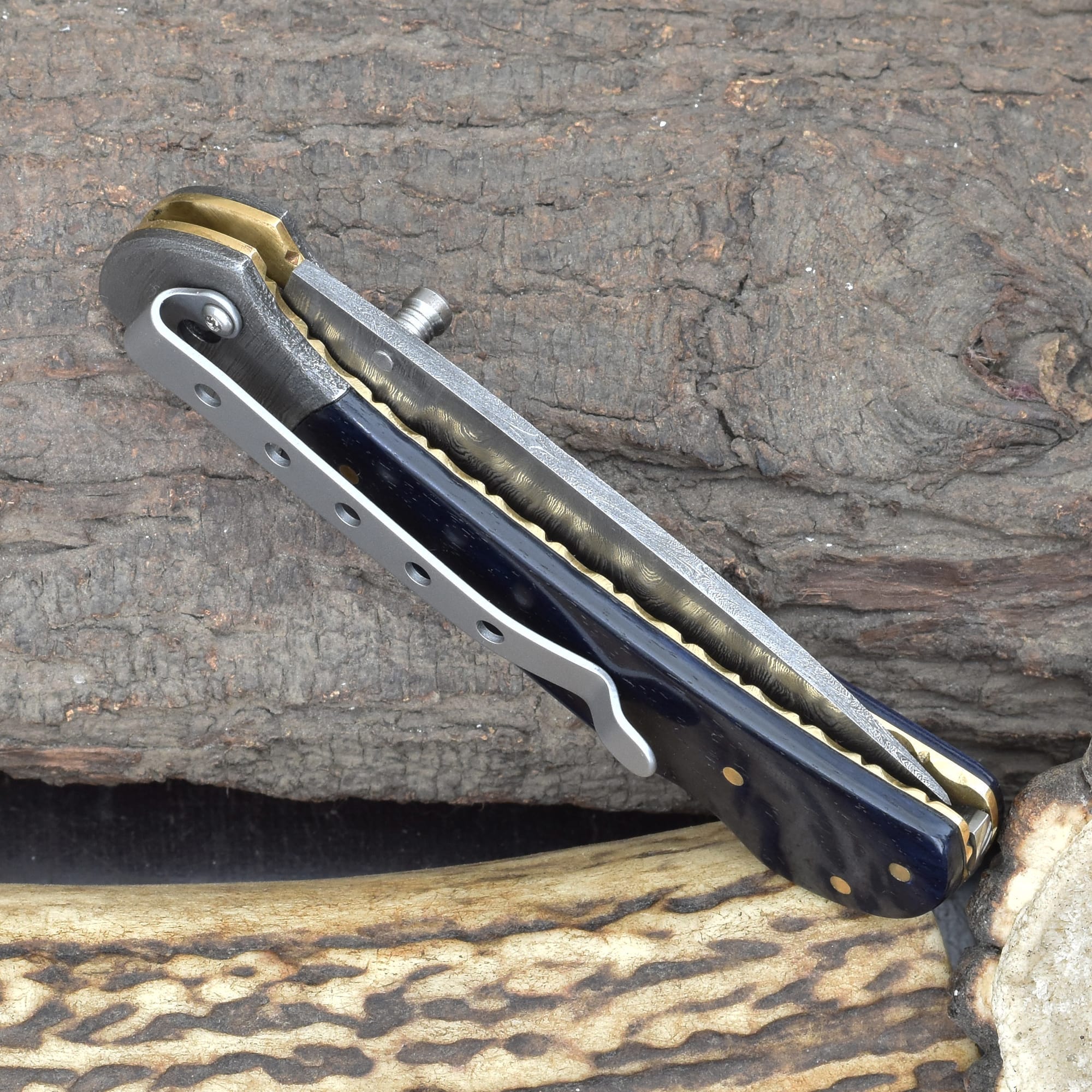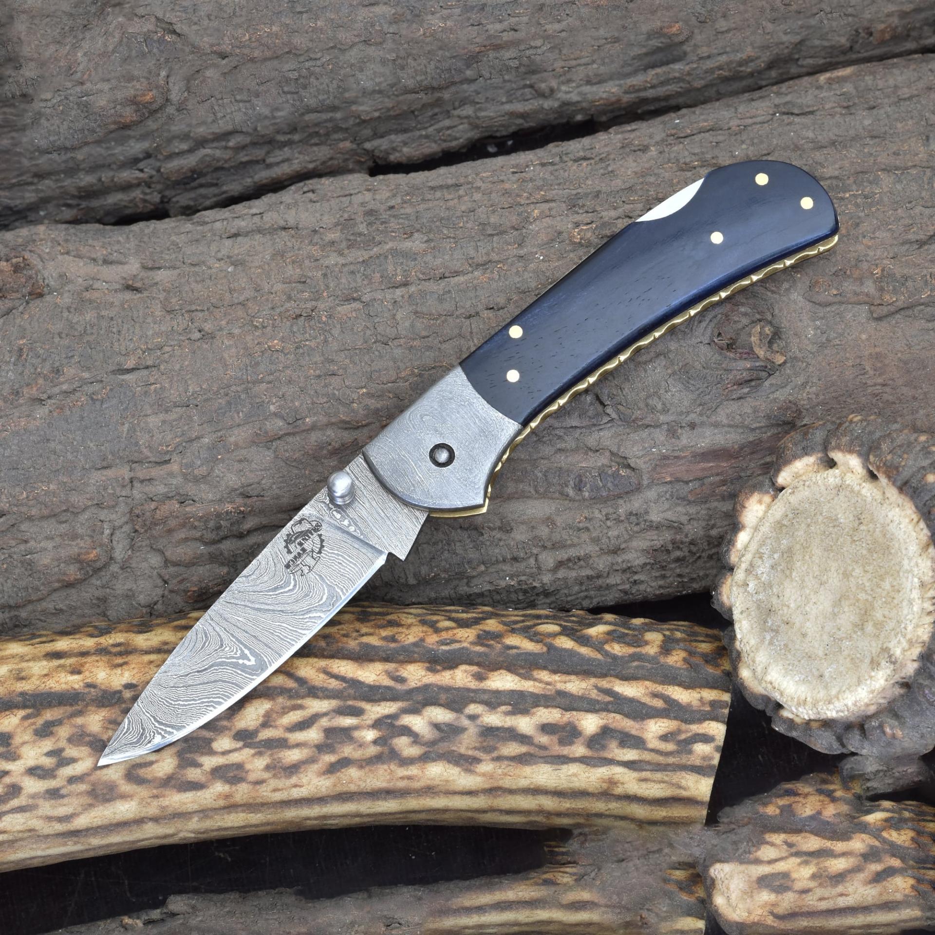 Ideal as a refined Damascus pocket knife with Blue bone handle, a reliable folding blade for everyday carry, and a durable compact knife suited for outdoor and tactical use.