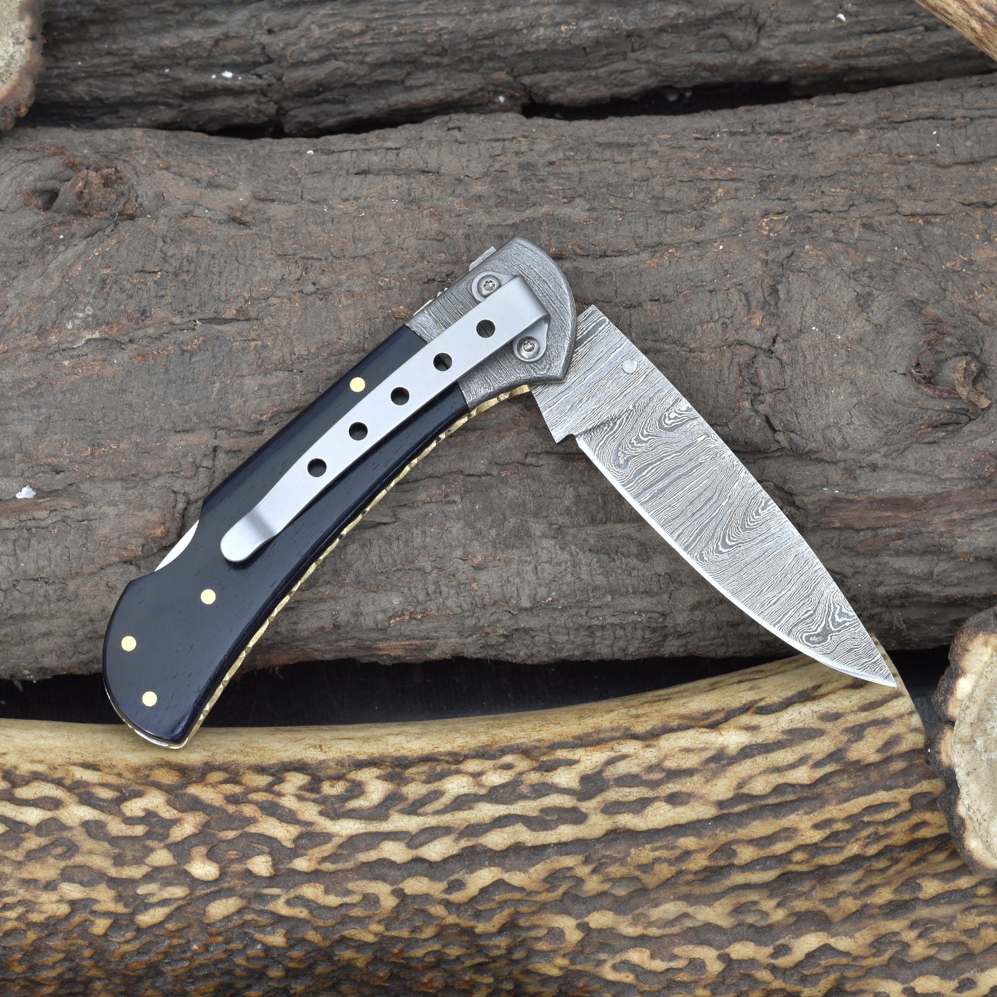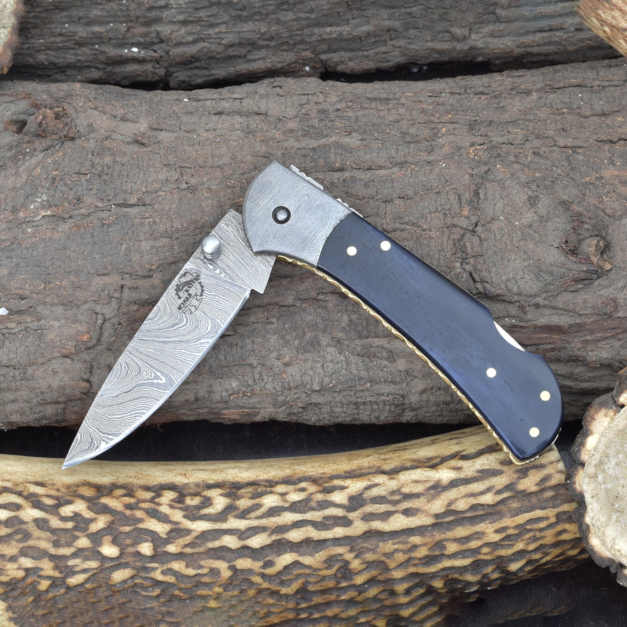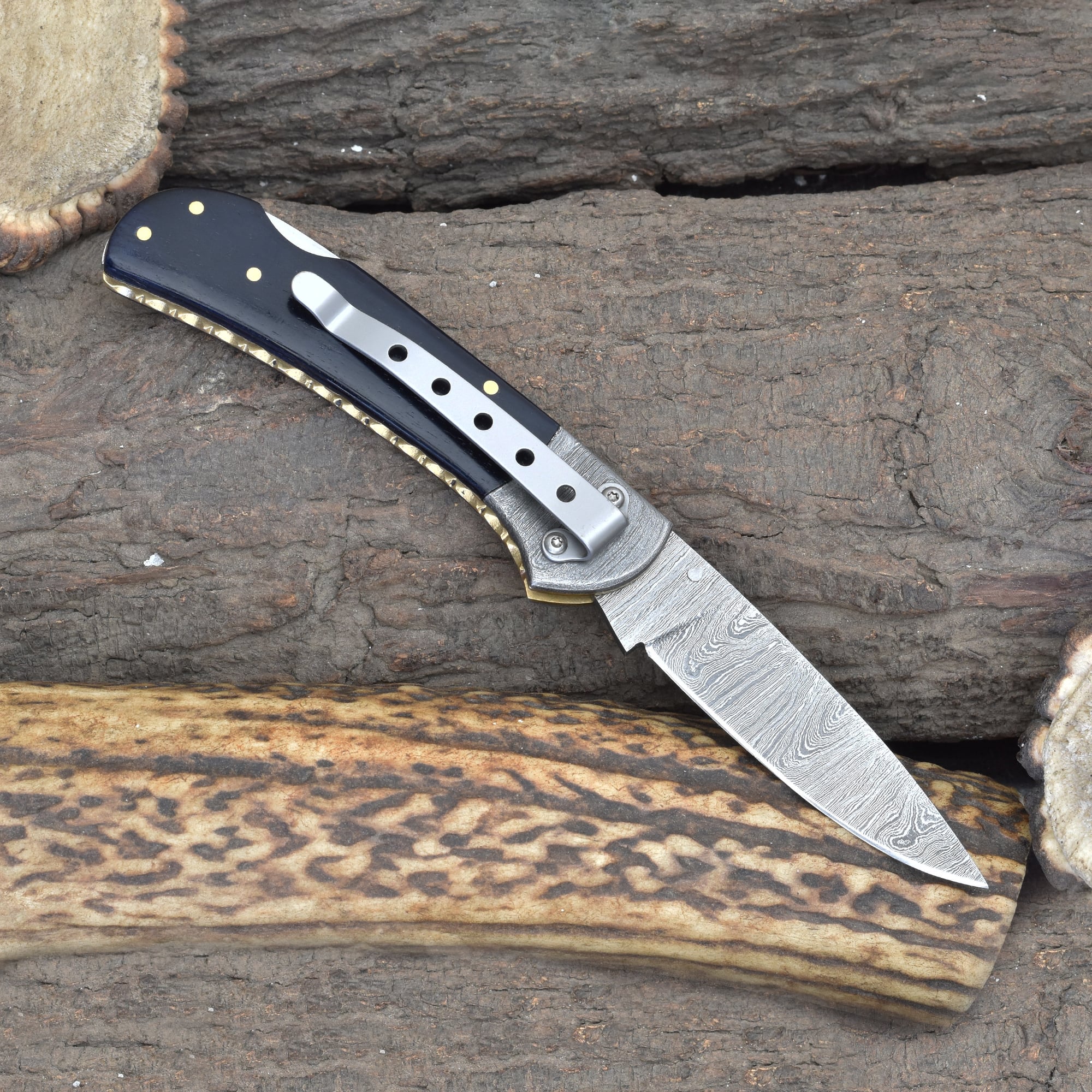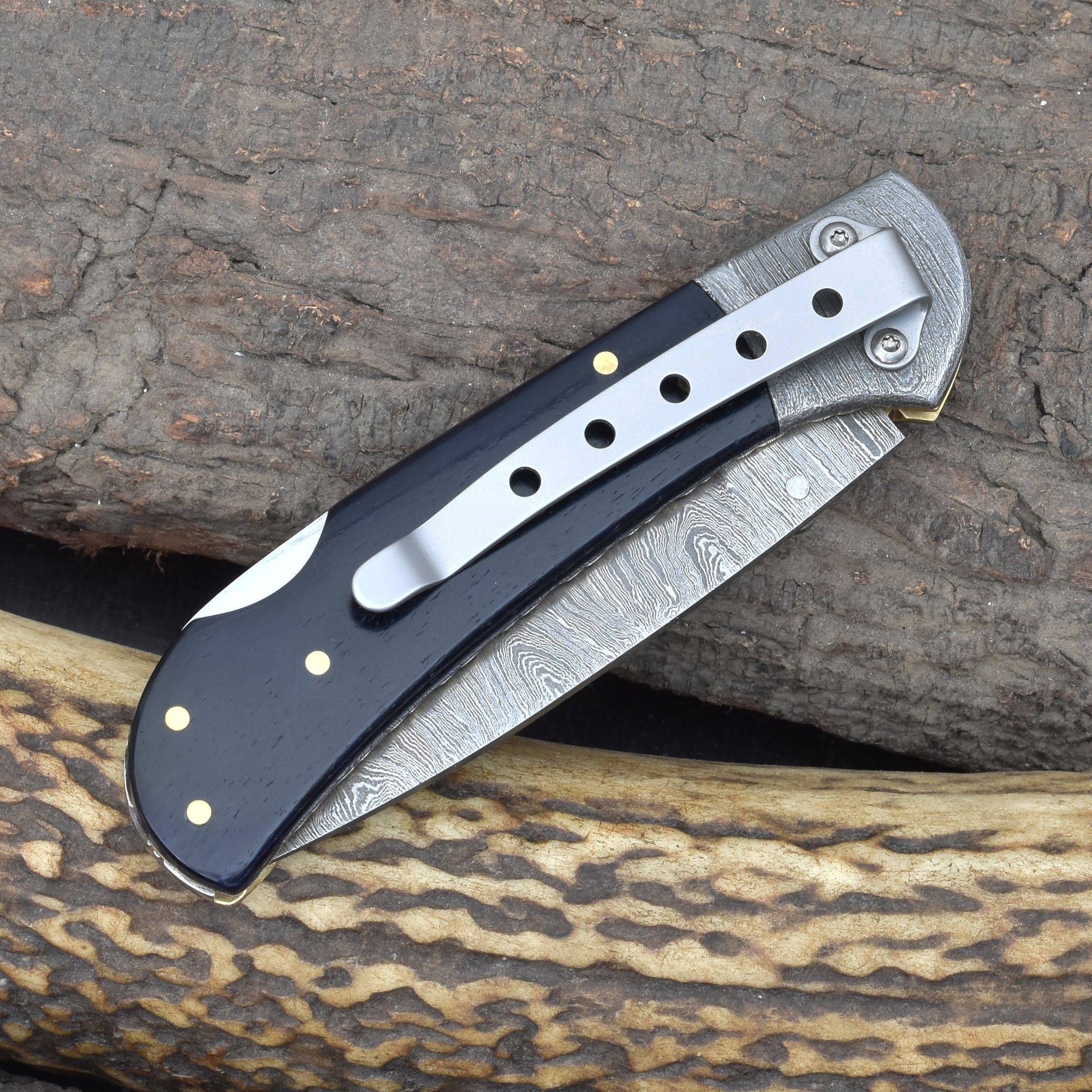 Knives Ranch Rosewood Damascus Folding Pocket Knife