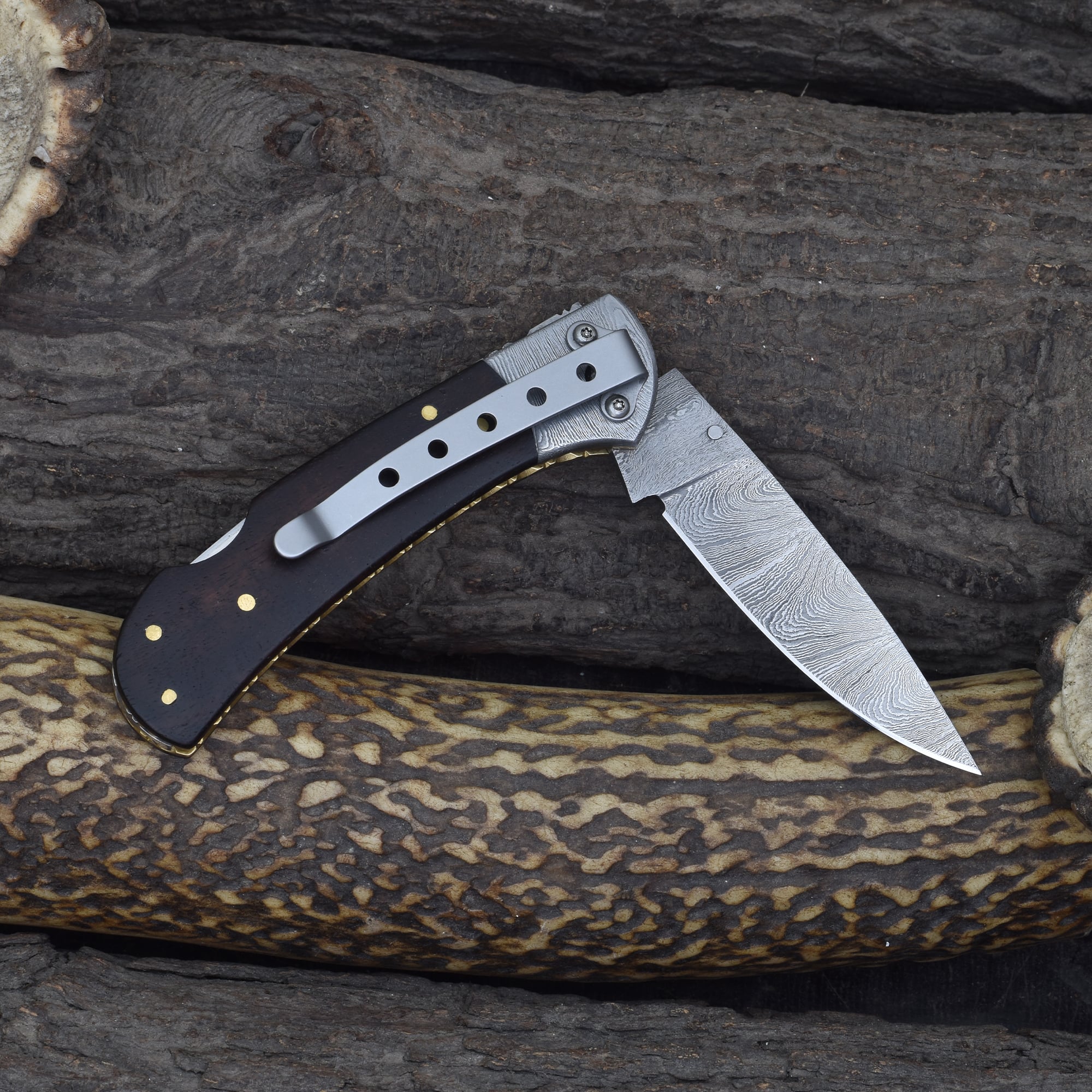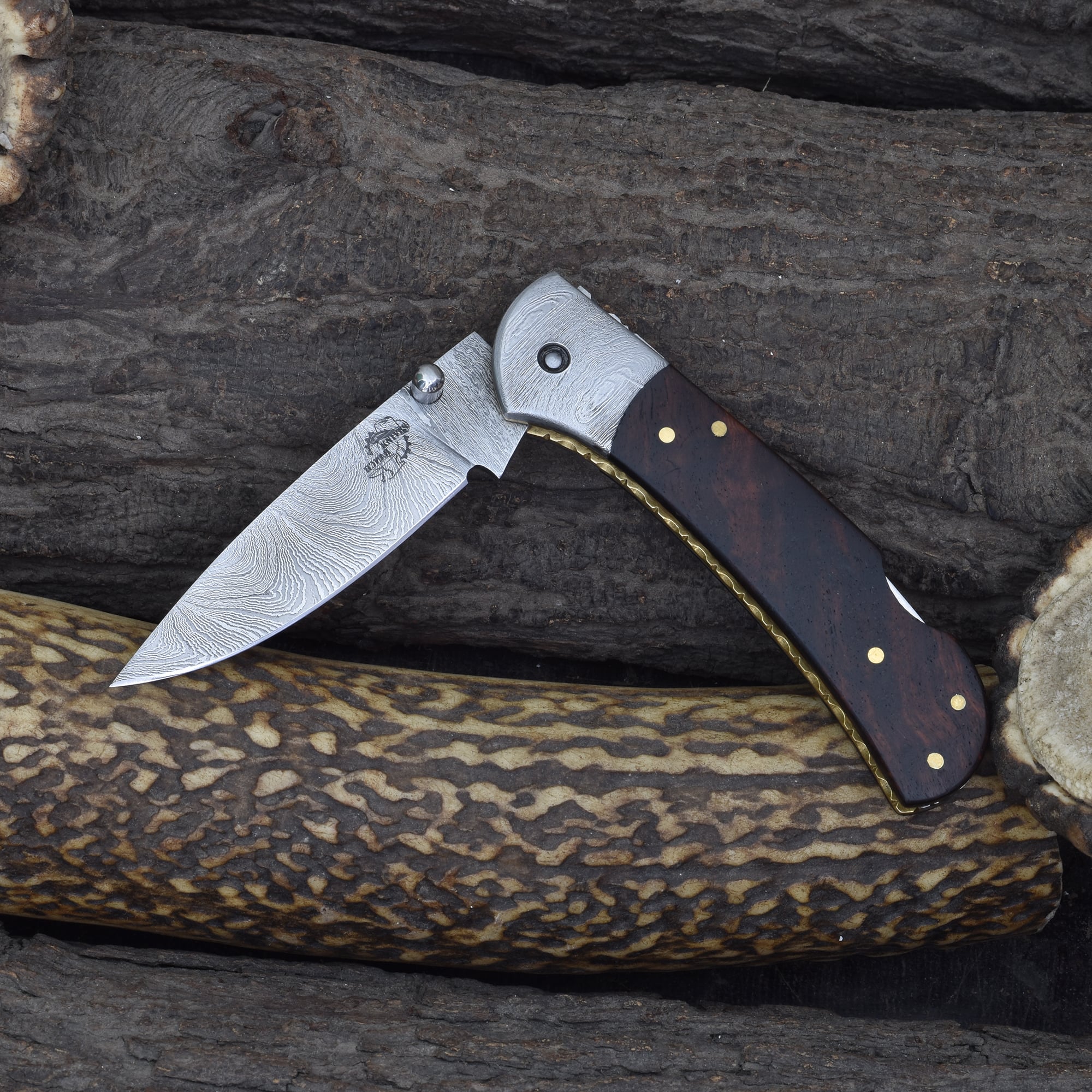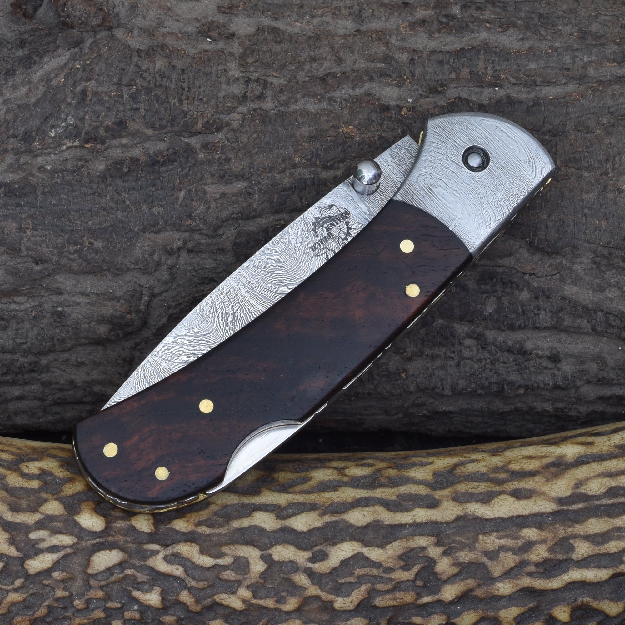 Knives Ranch Rosewood Damascus Folding Pocket Knife