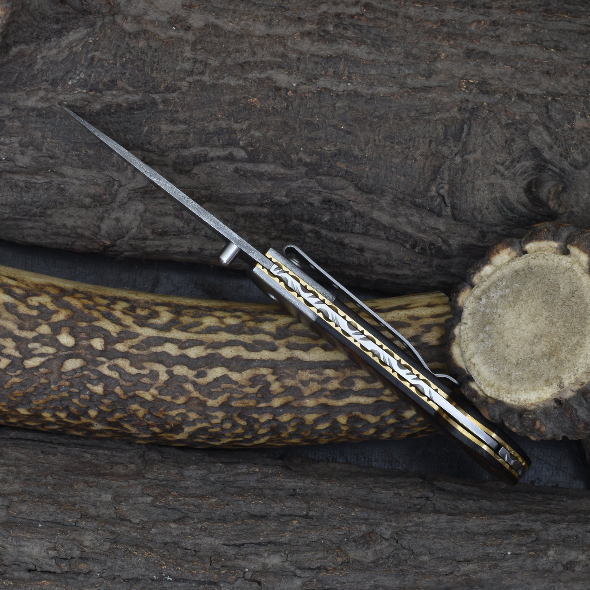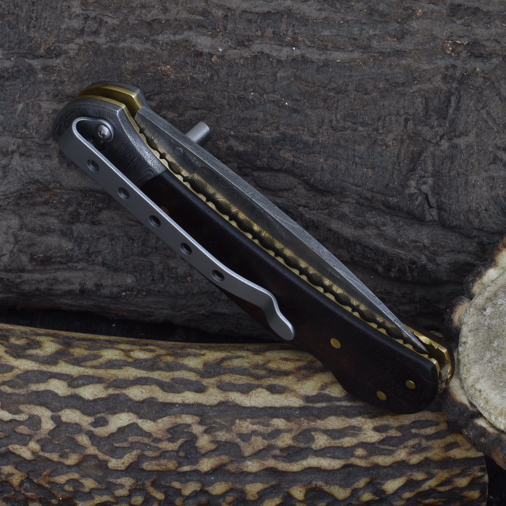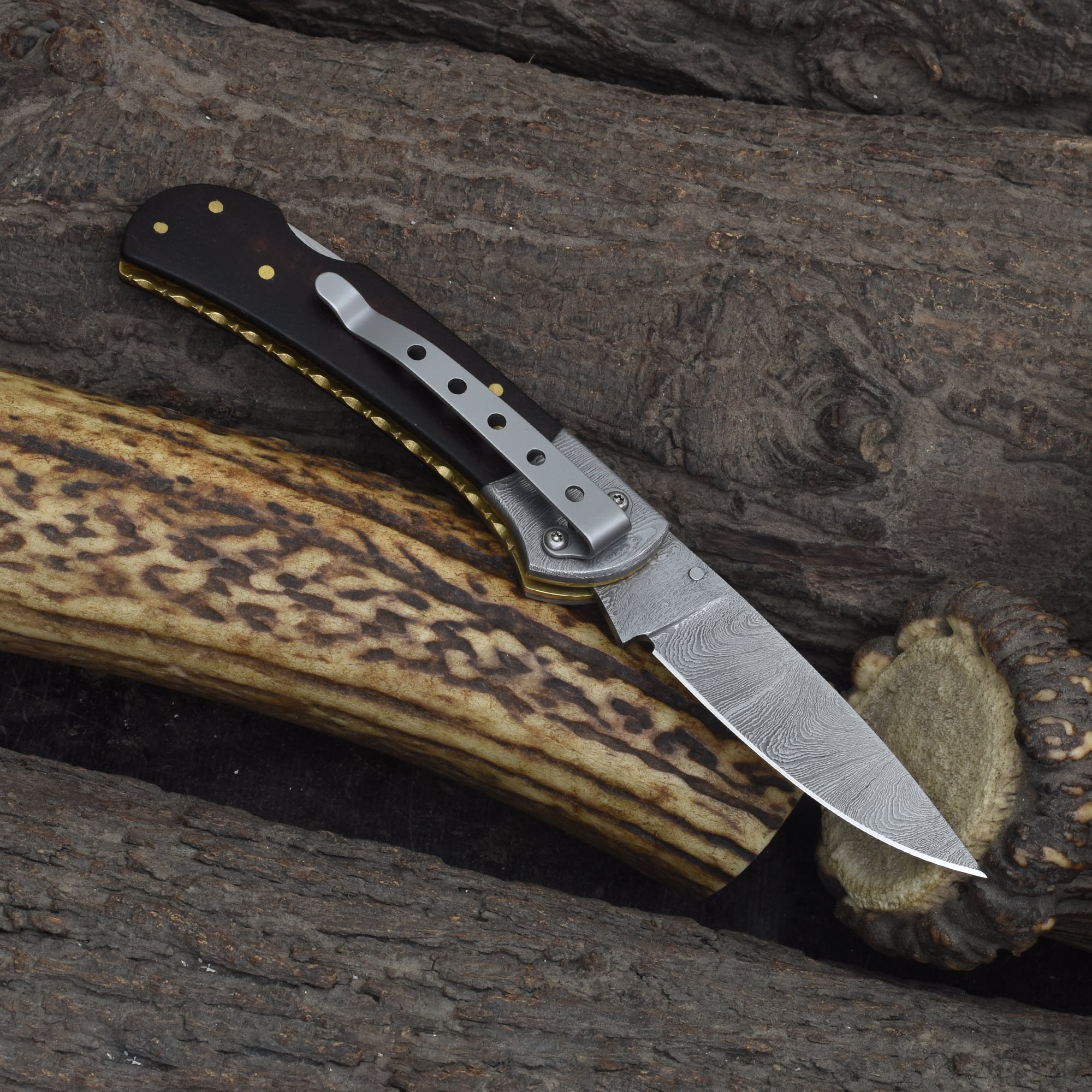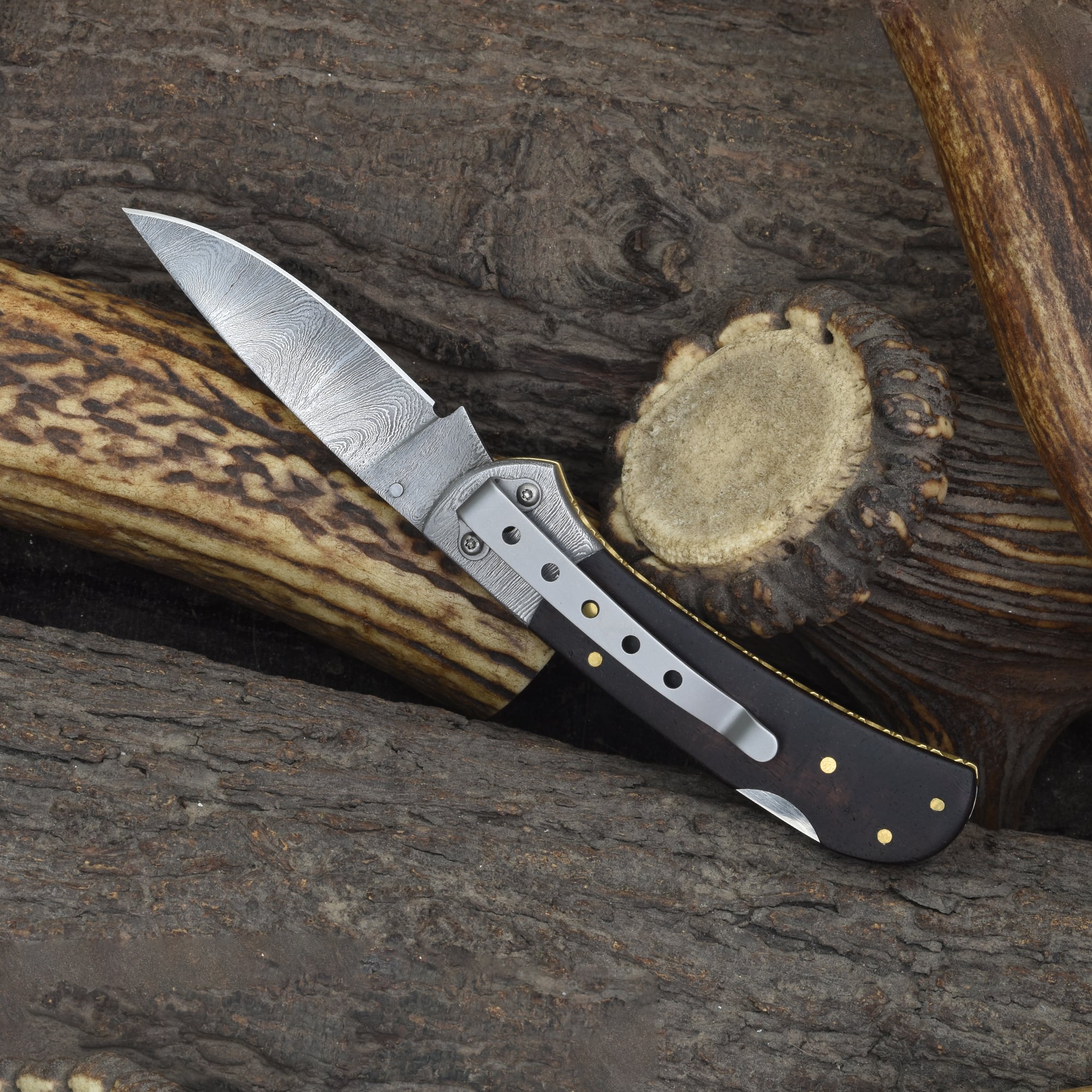 Knives Ranch Rosewood Damascus Folding Pocket Knife