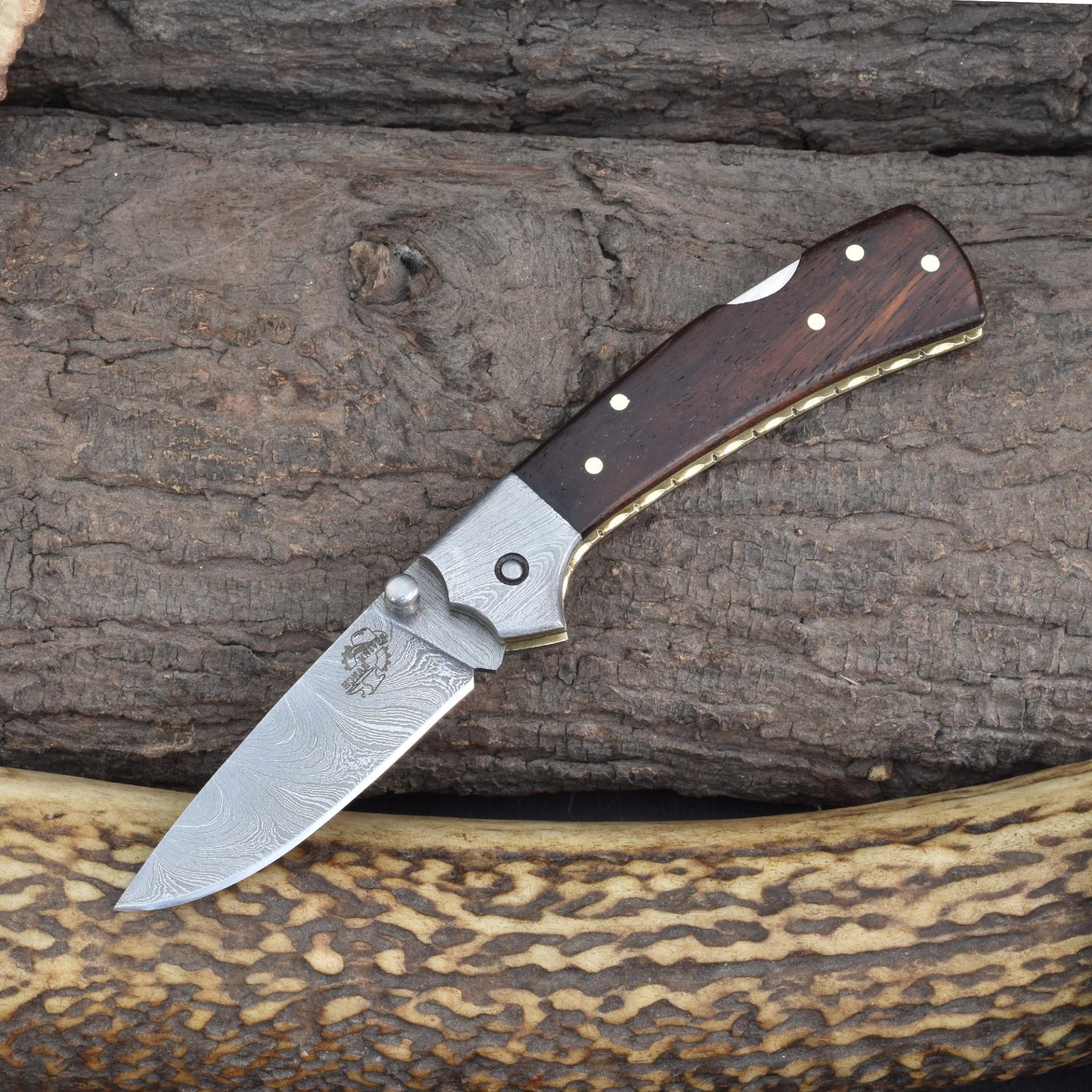 Knives Ranch Folding EDC Knife with Rosewood Handle and Damascus Steel Blade