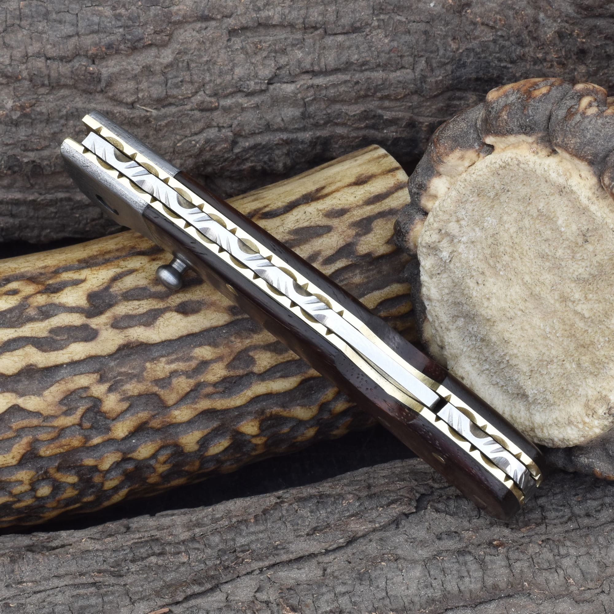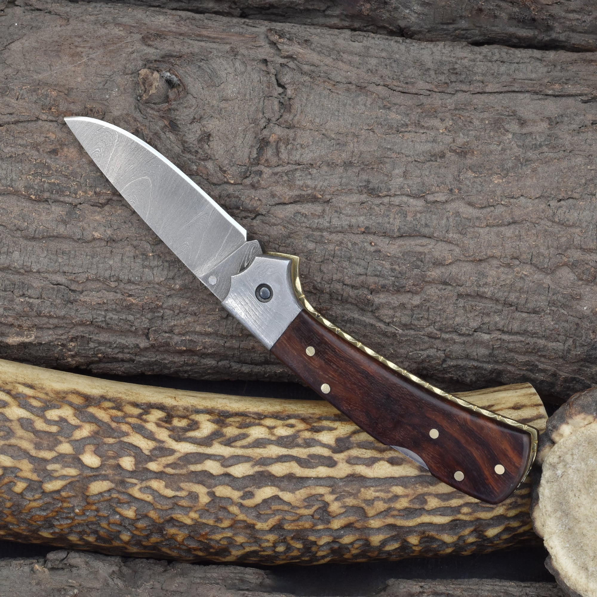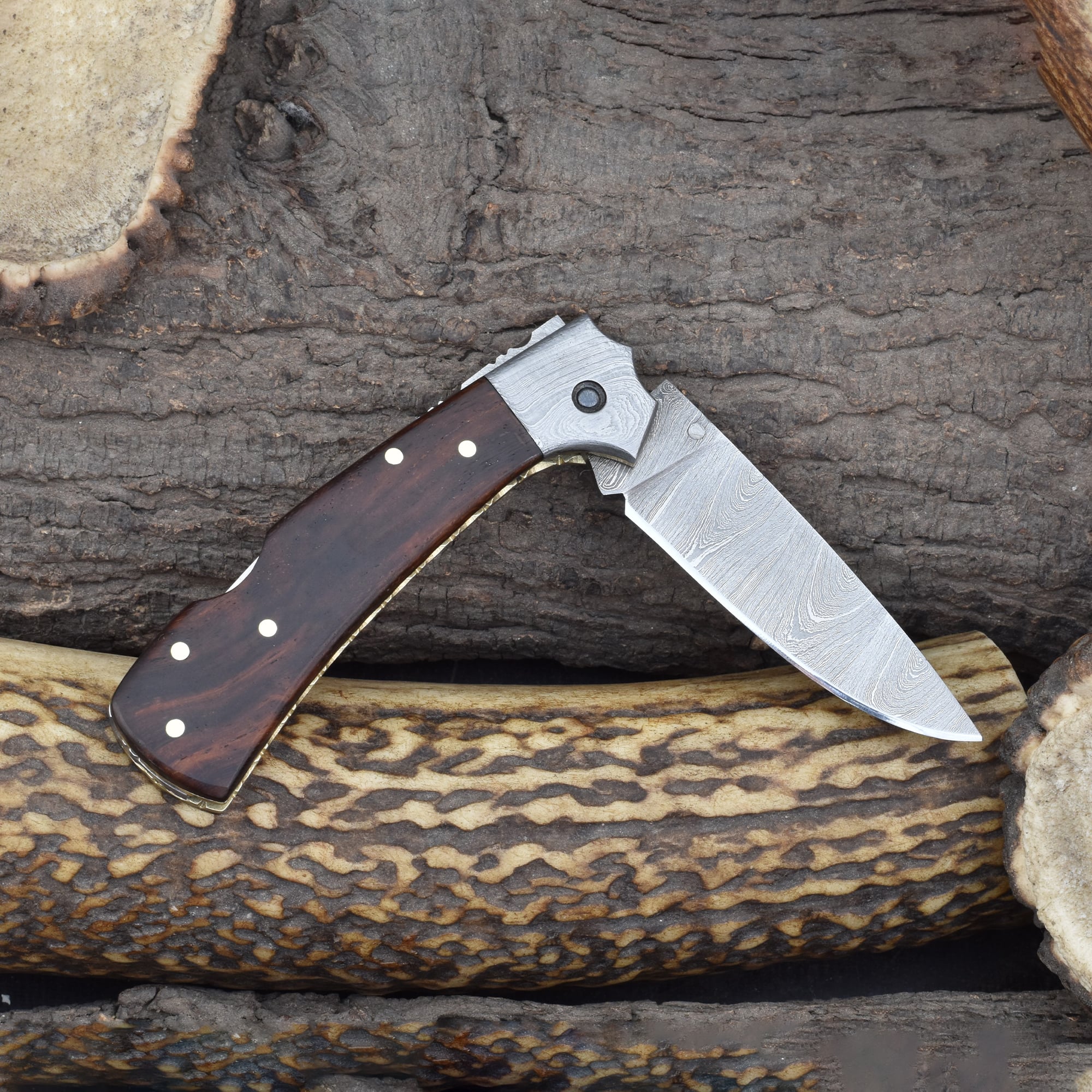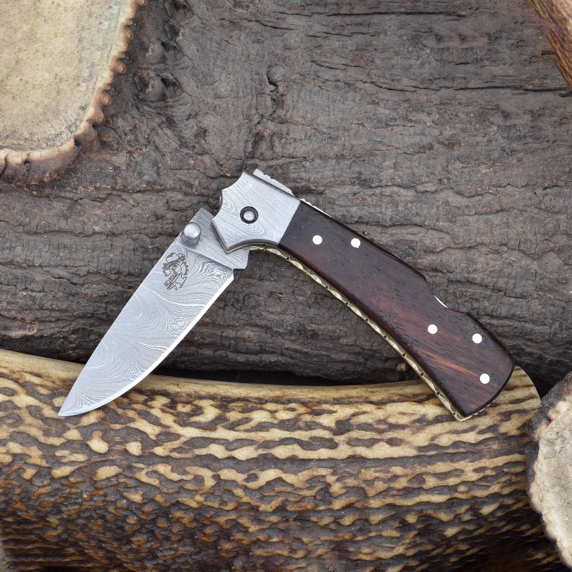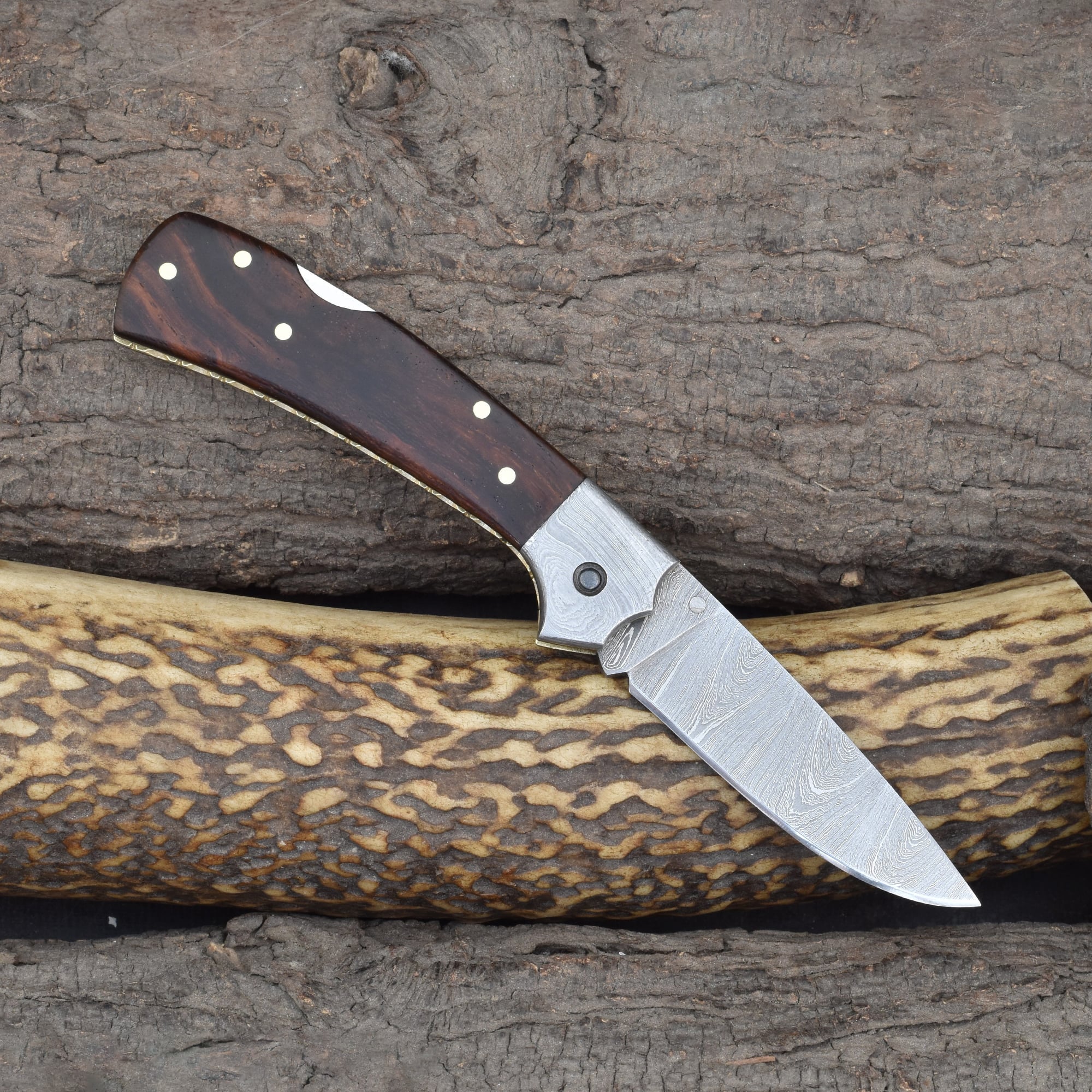 Knives Ranch Rosewood Damascus Folding Pocket Knife