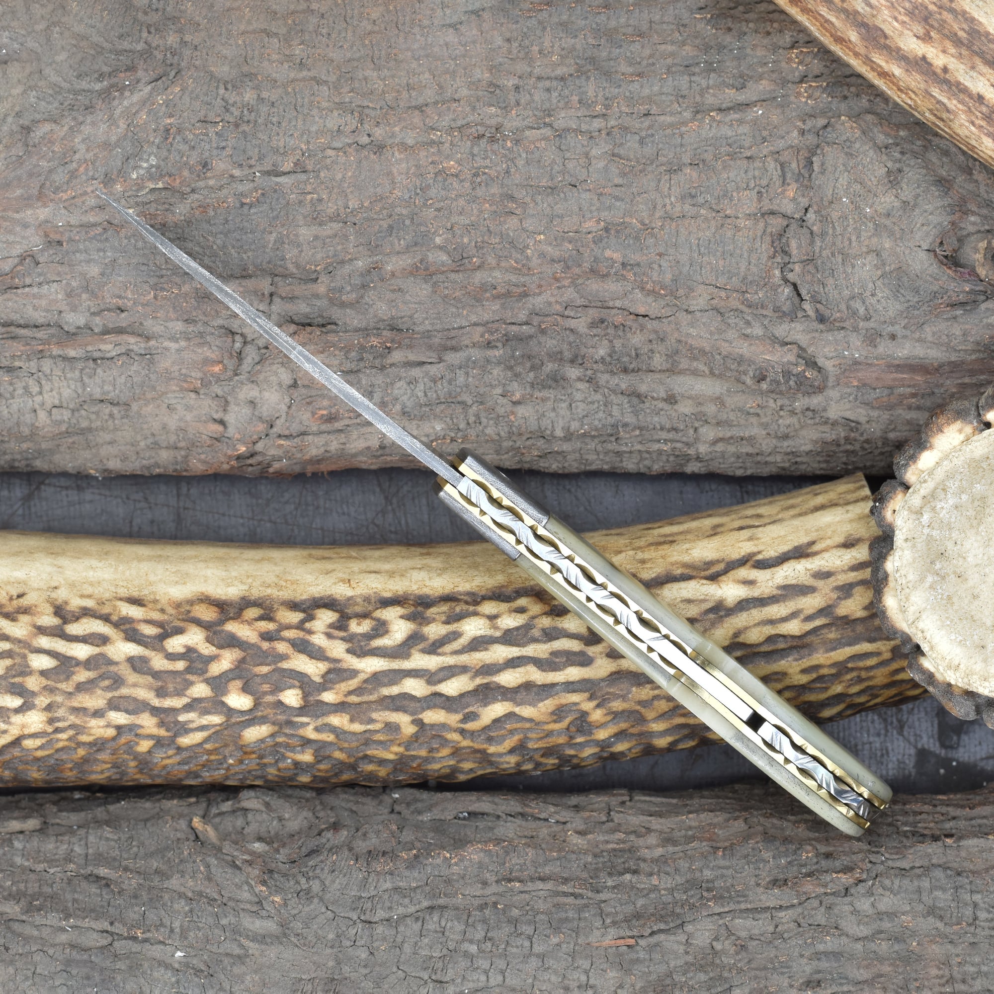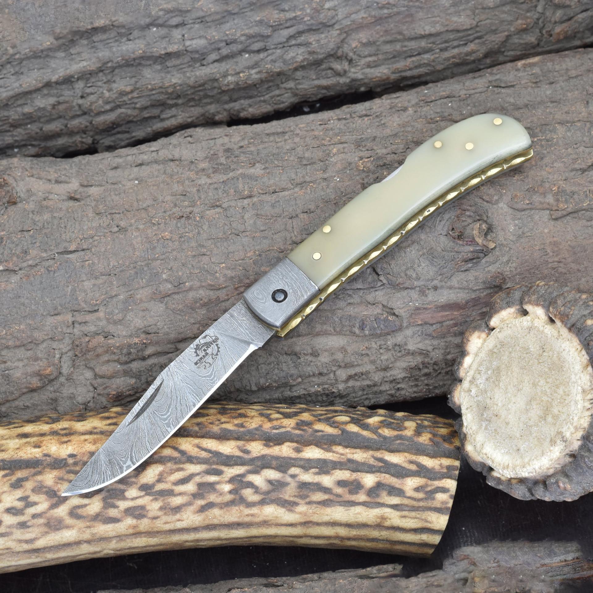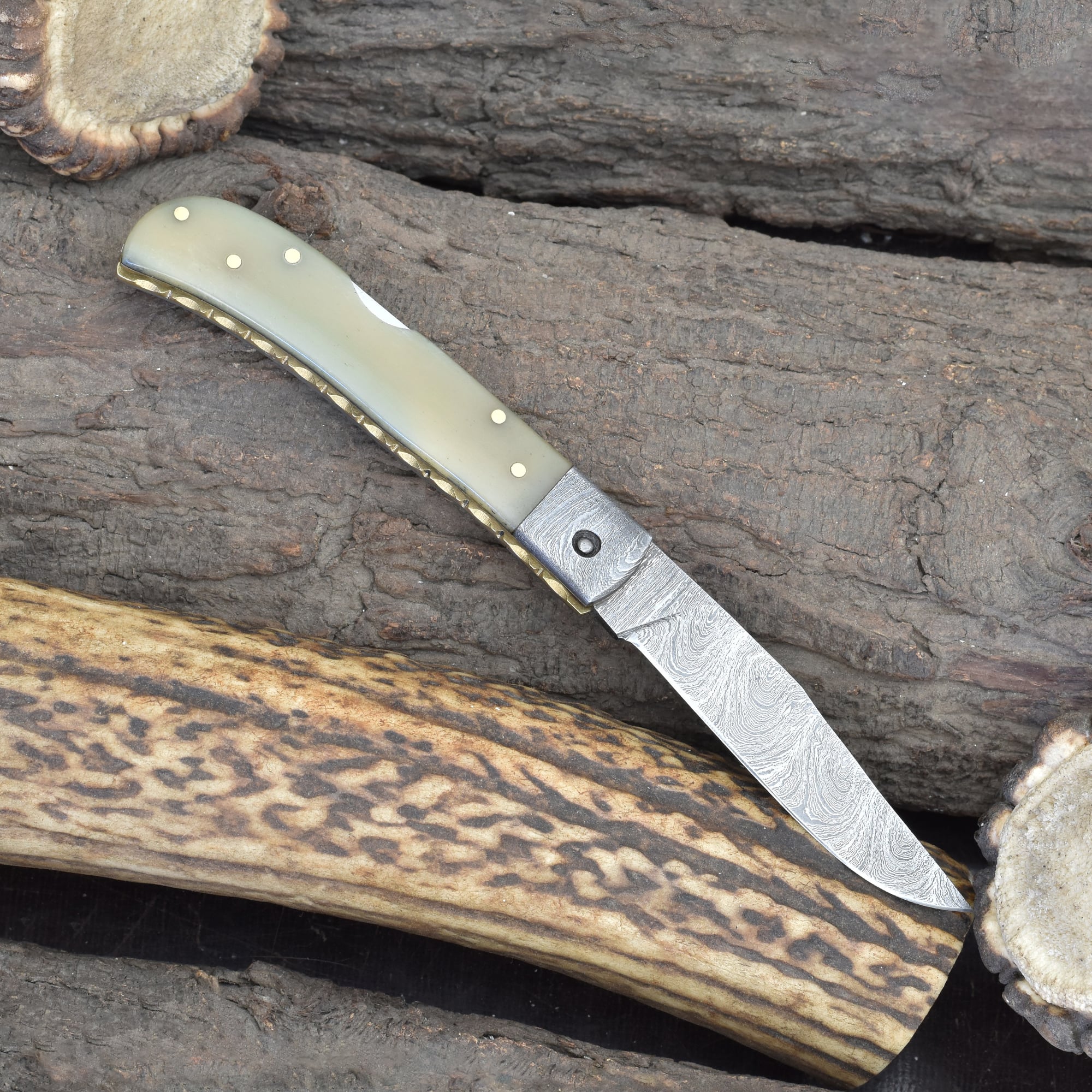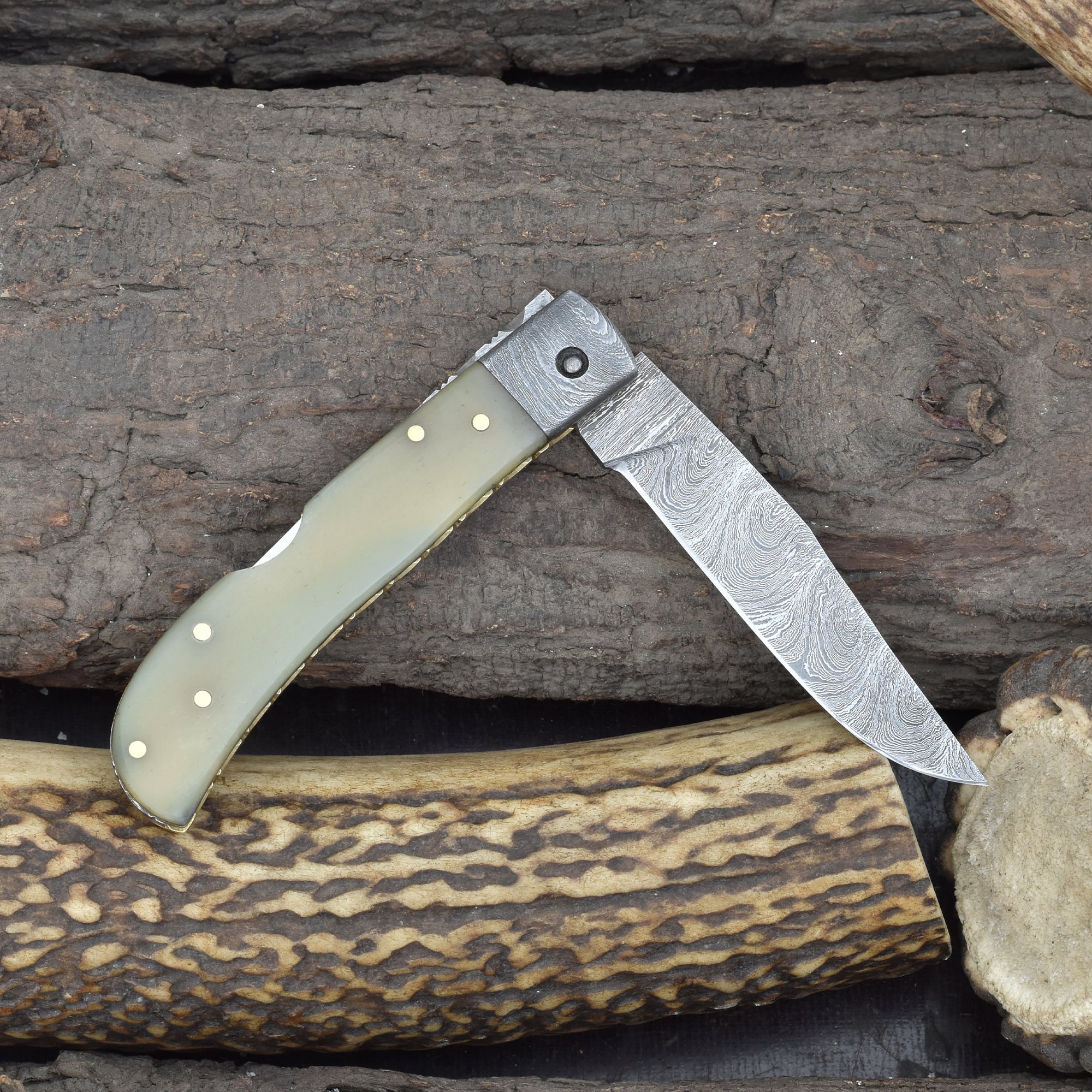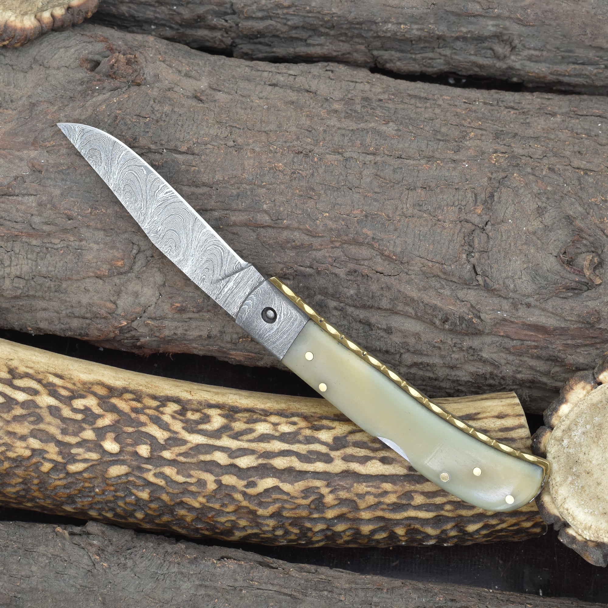 Best Folding Knife - 4" (Closed) Slim Pocket Knife with Sheep Bone Handle