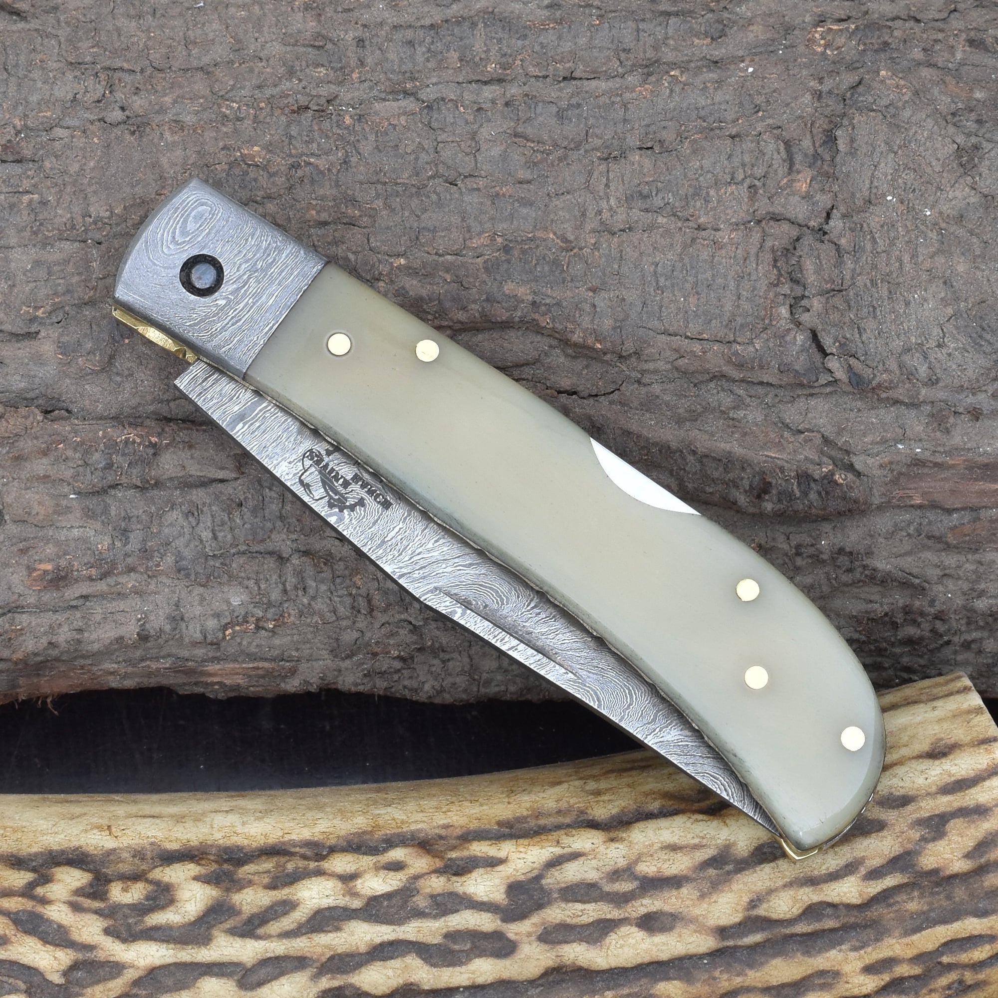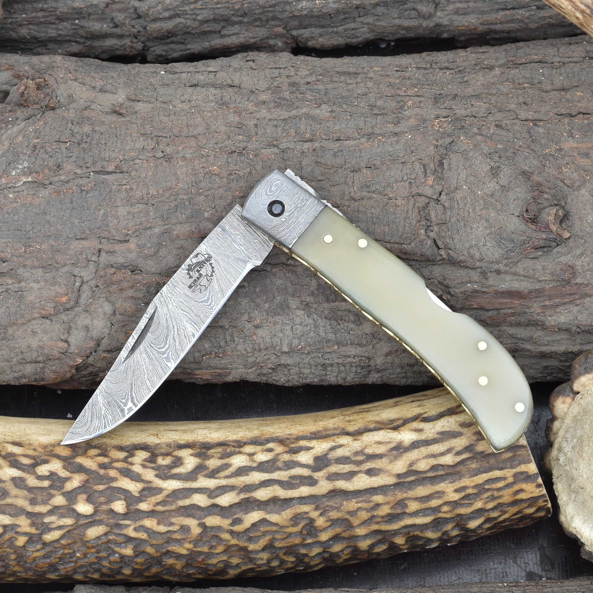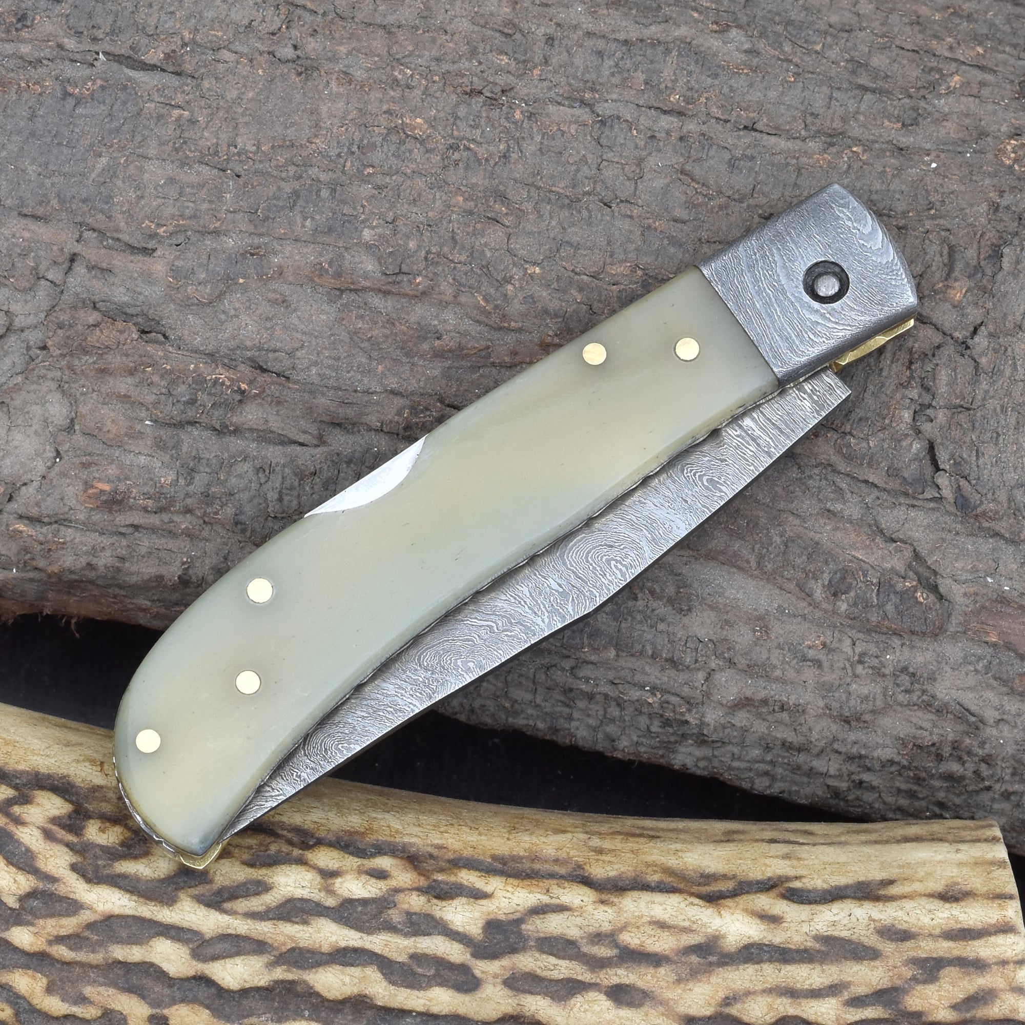Knives Ranch Bone Damascus Folding Pocket Knife