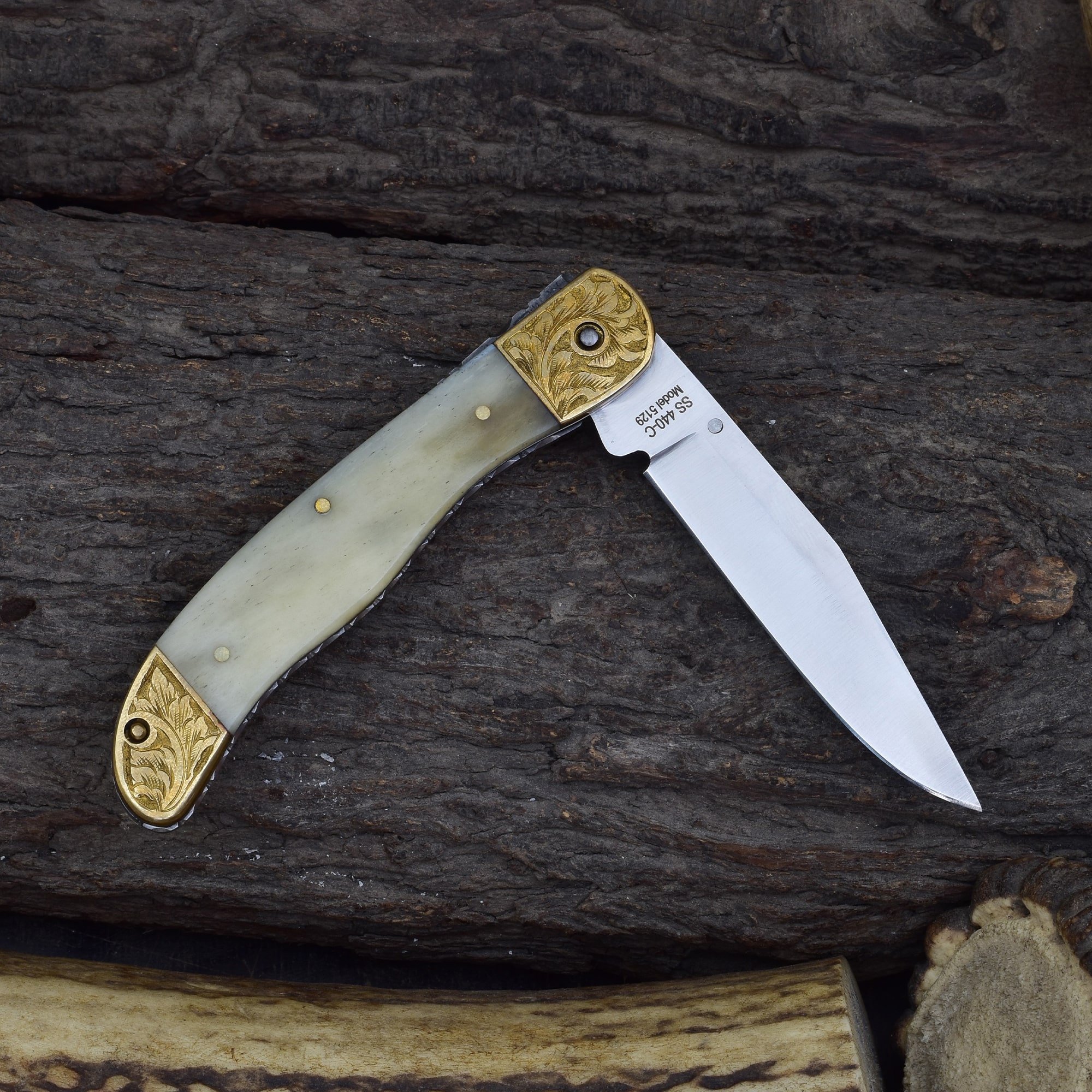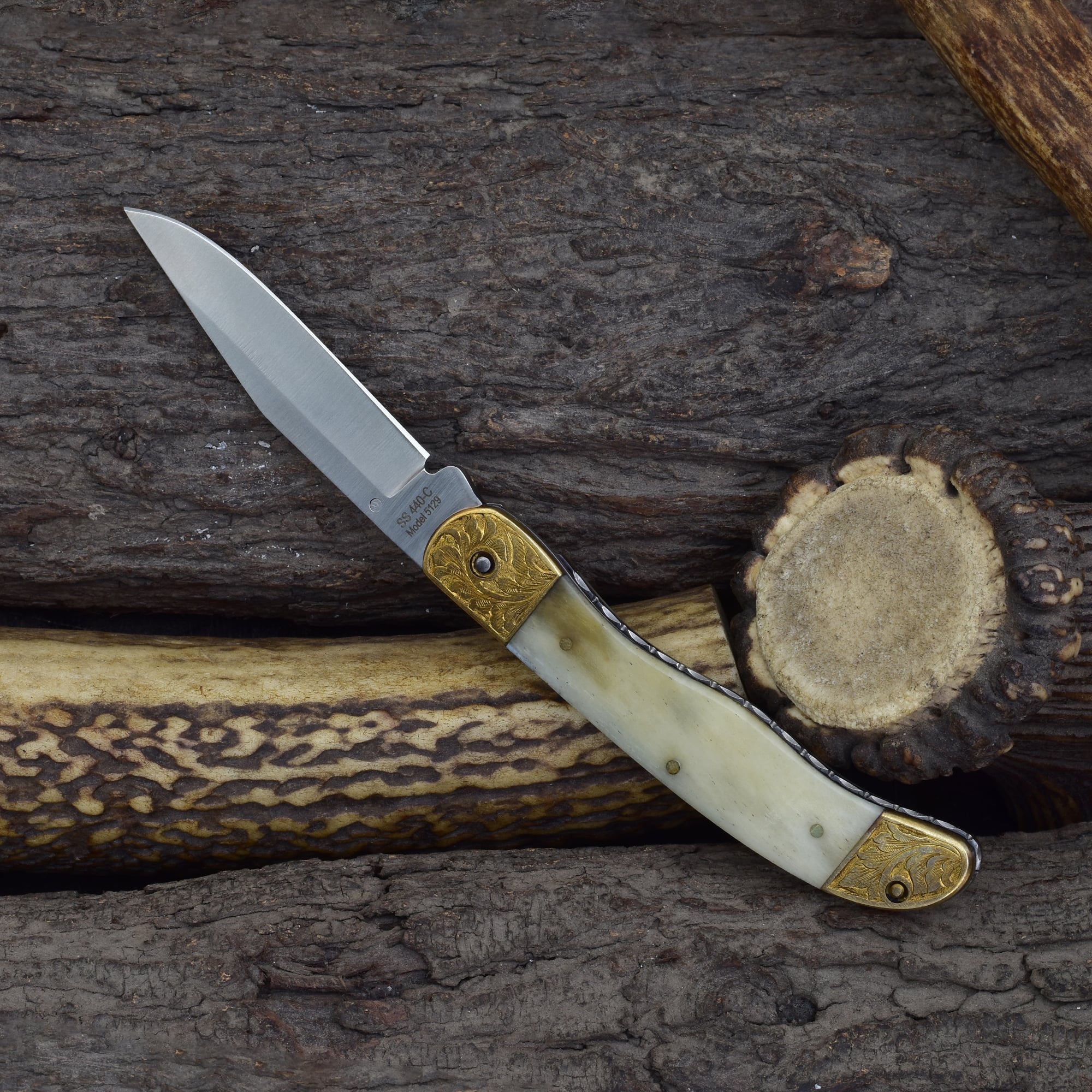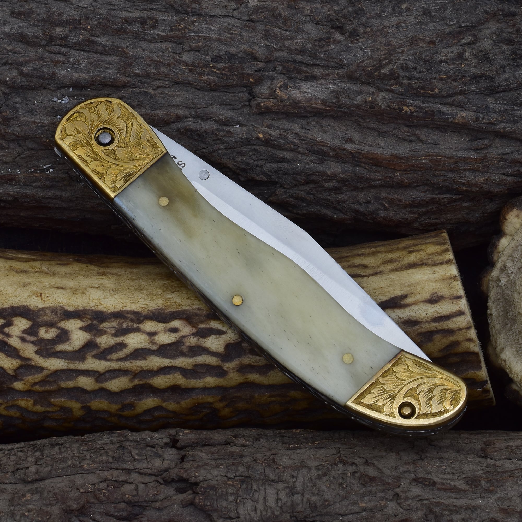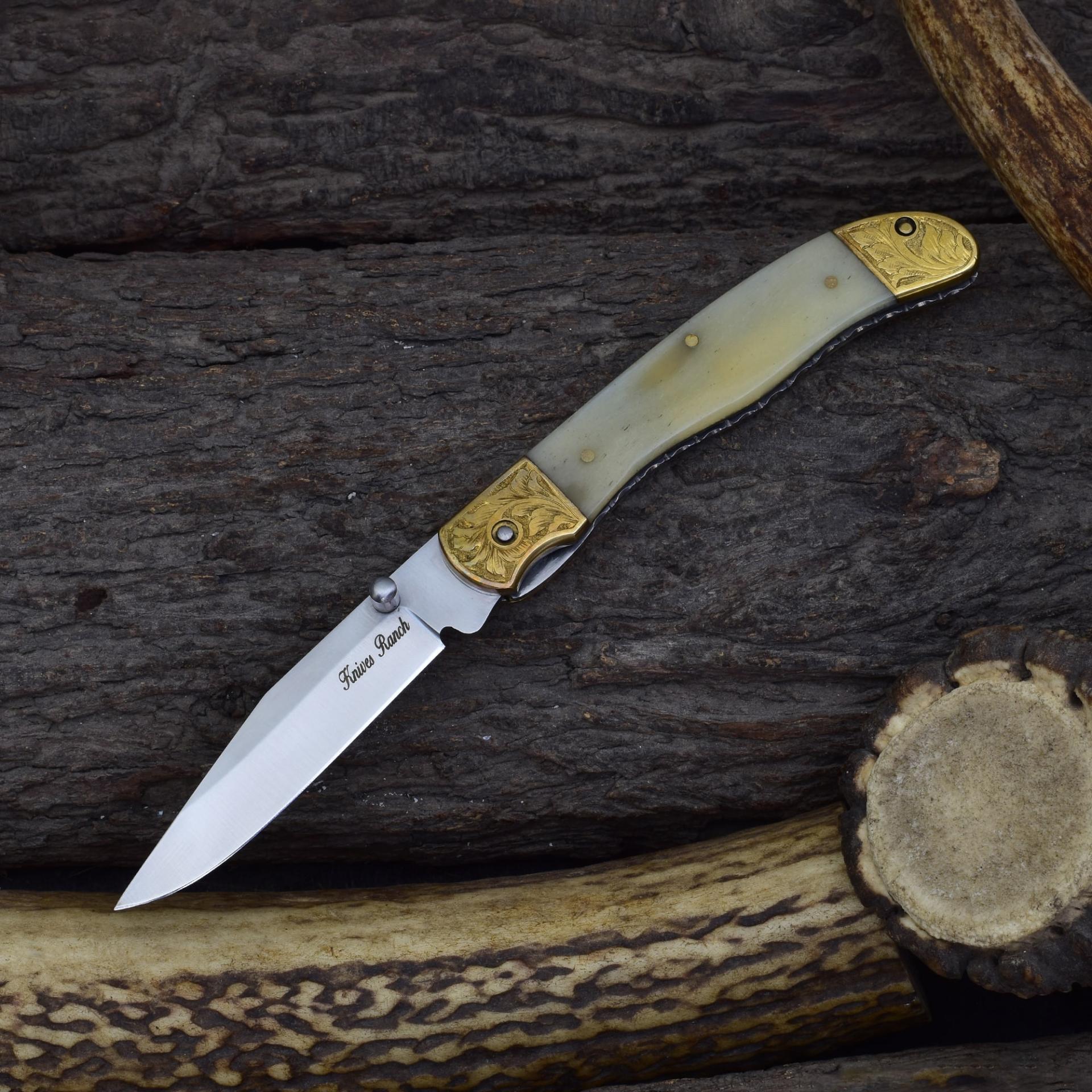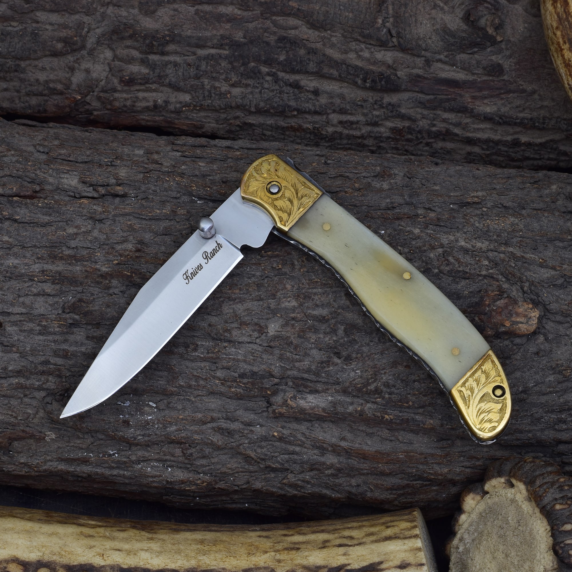 Knives Ranch Reaper Folding Knife with Cattle Shin Bone Handle