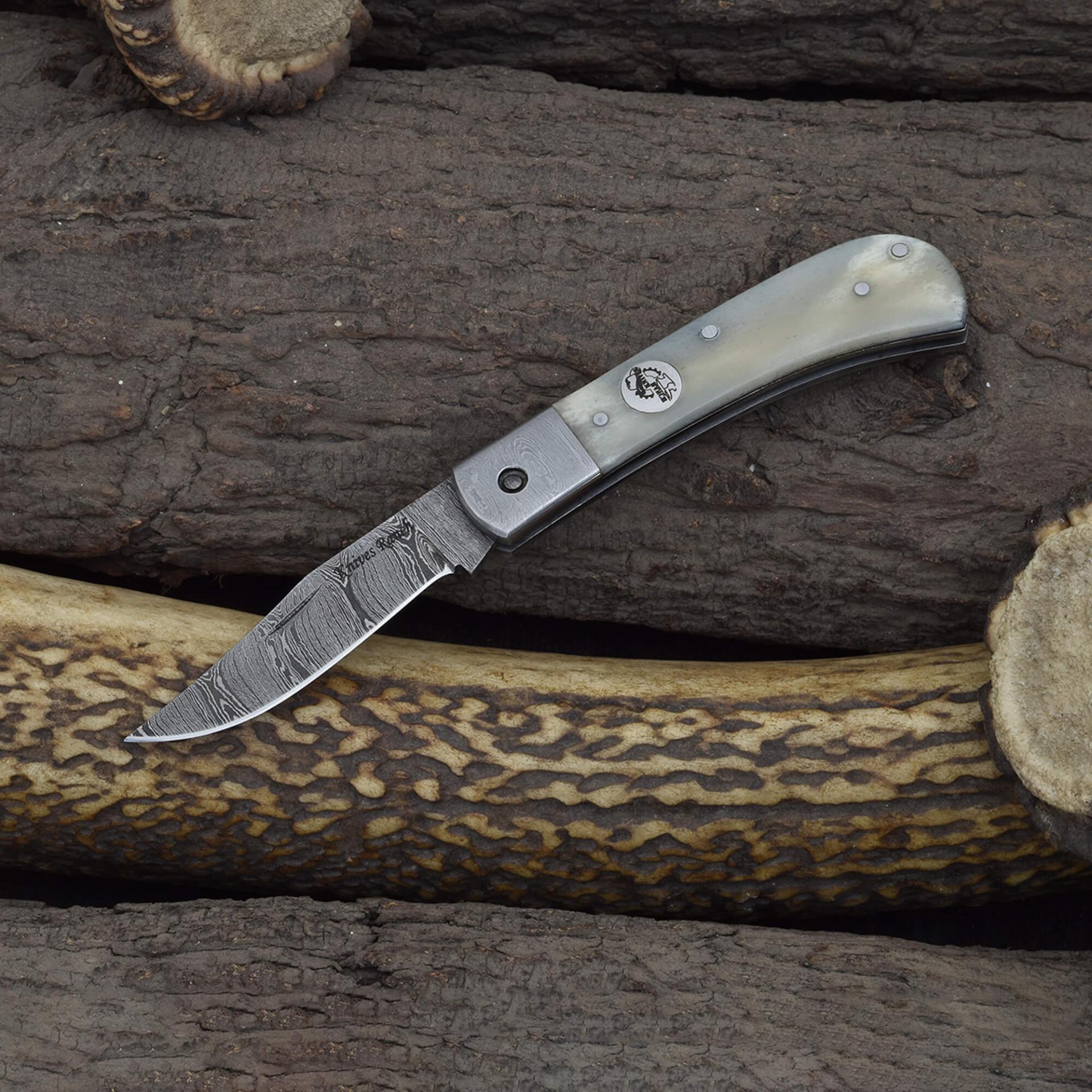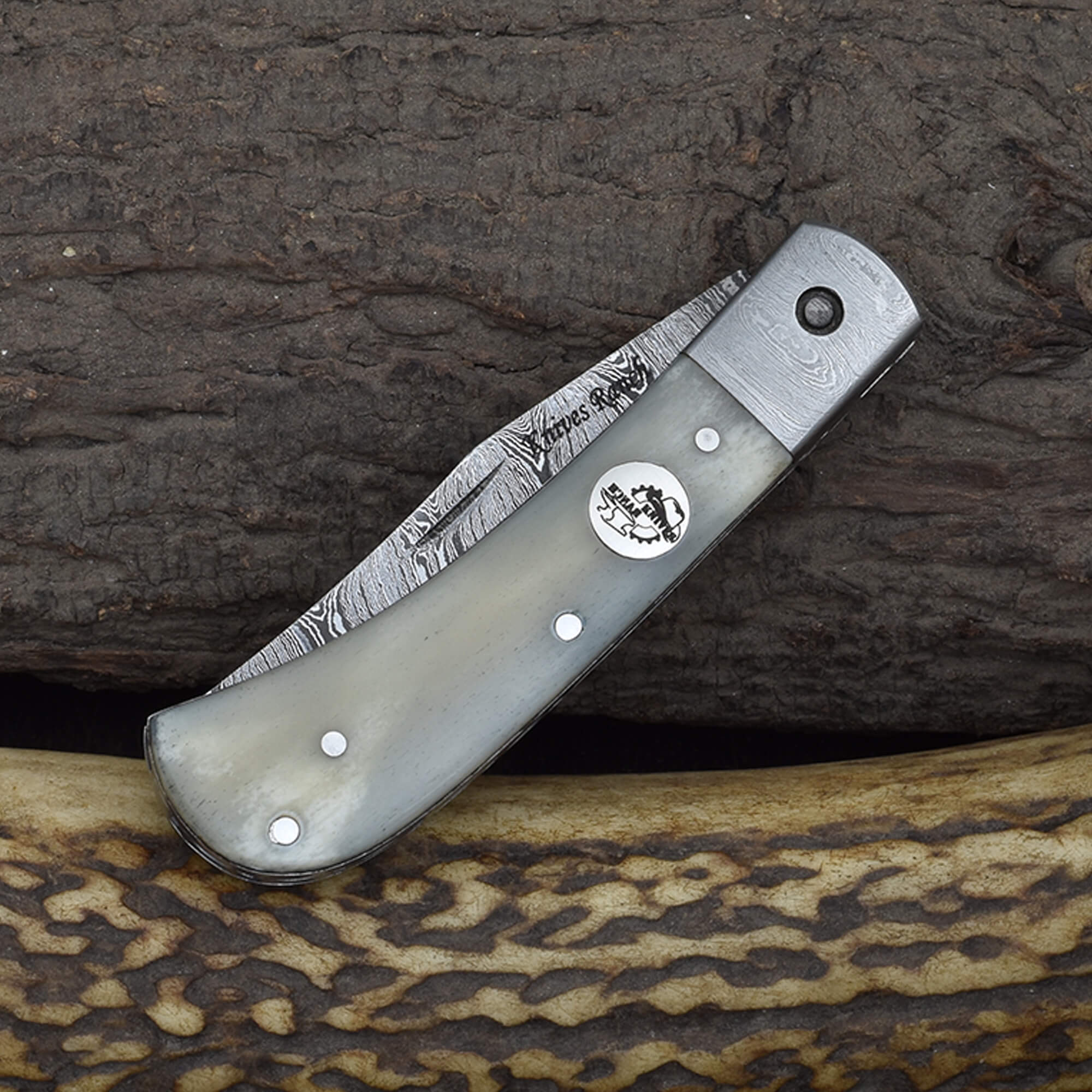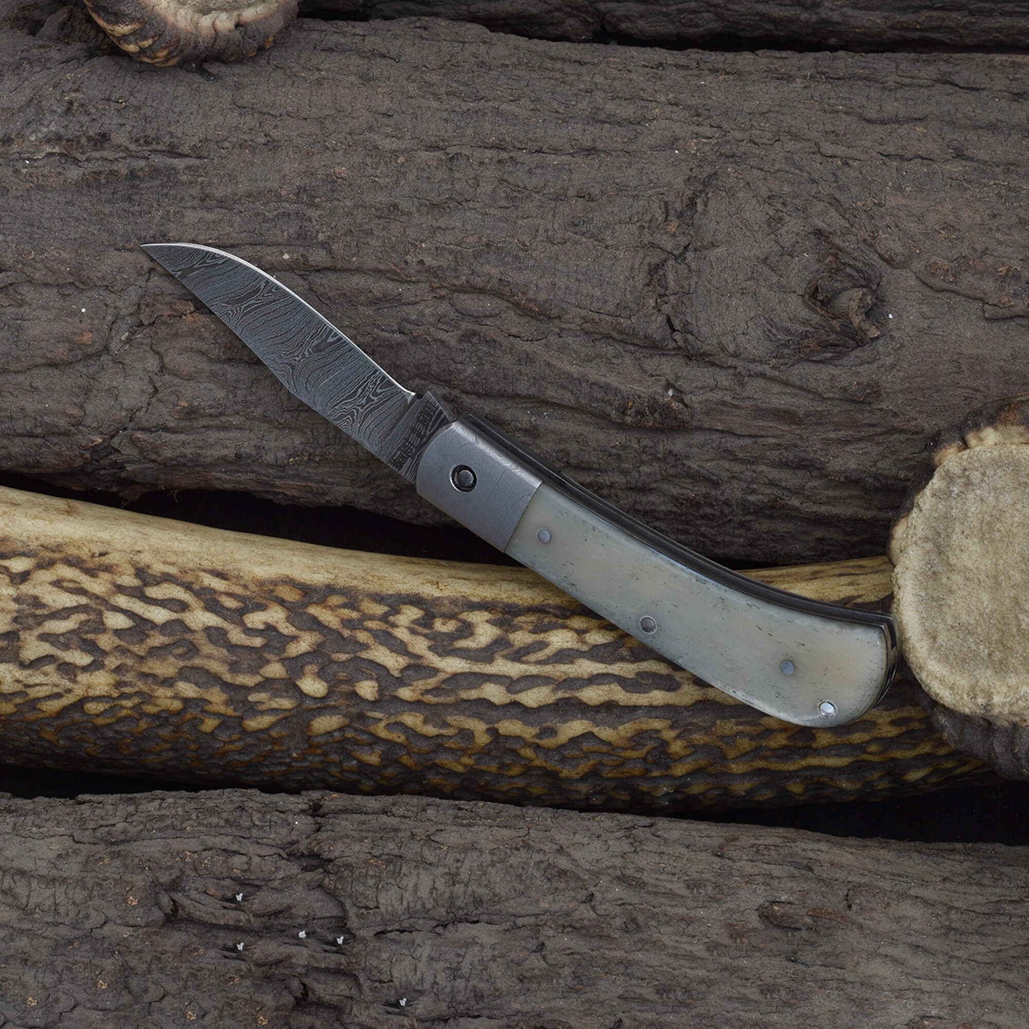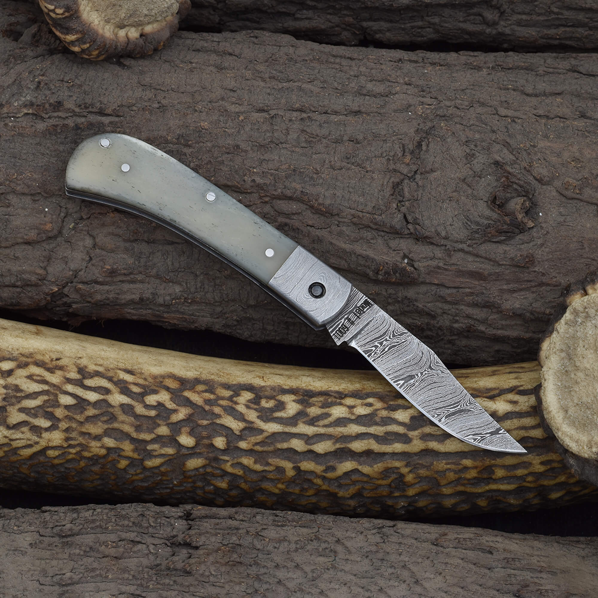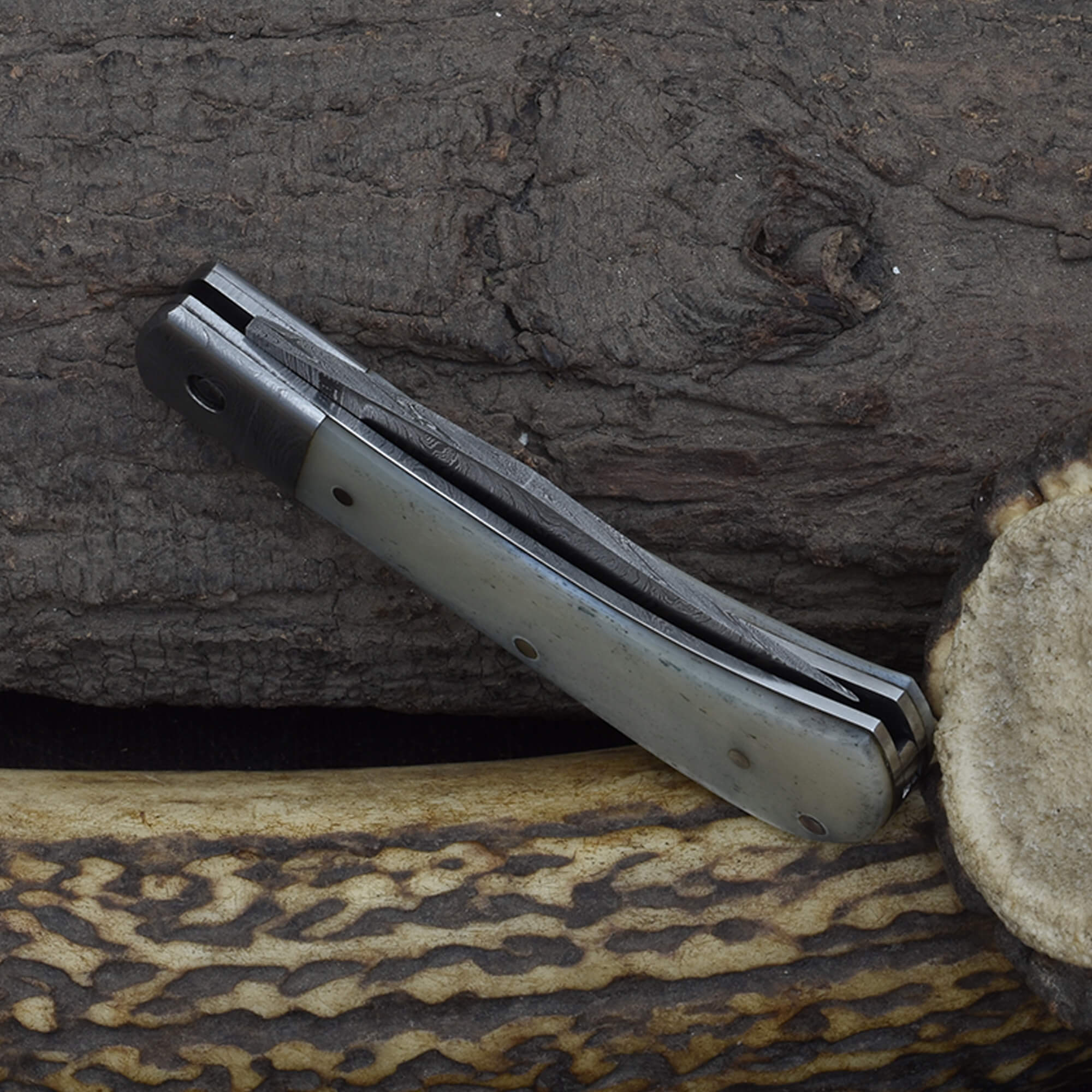 Damascus Pocket Knife Slip Joint with Bone Handle | Model 6001 | Knives Ranch