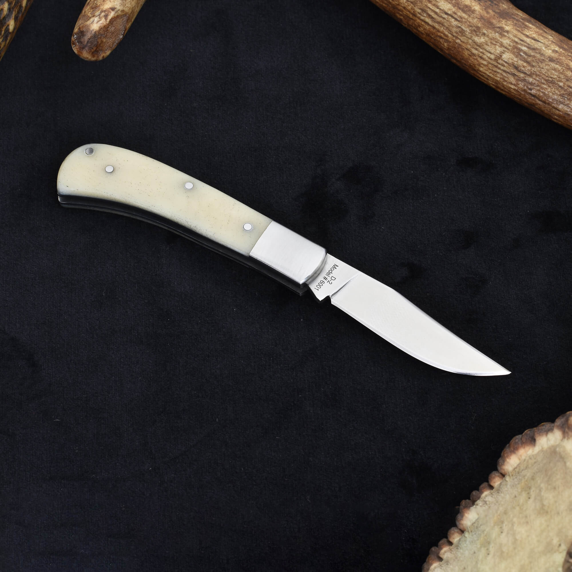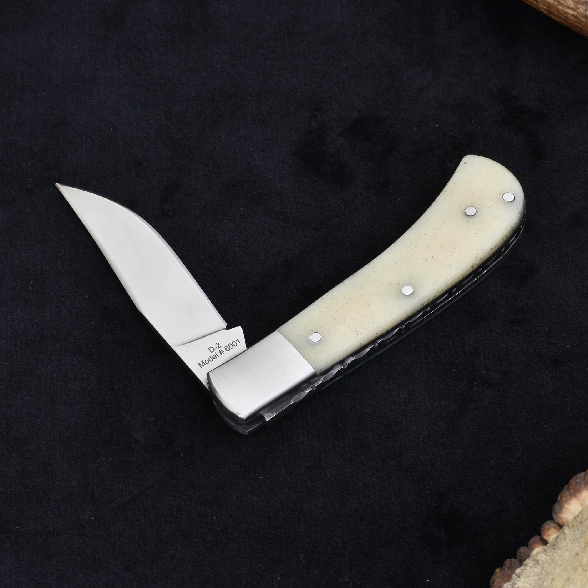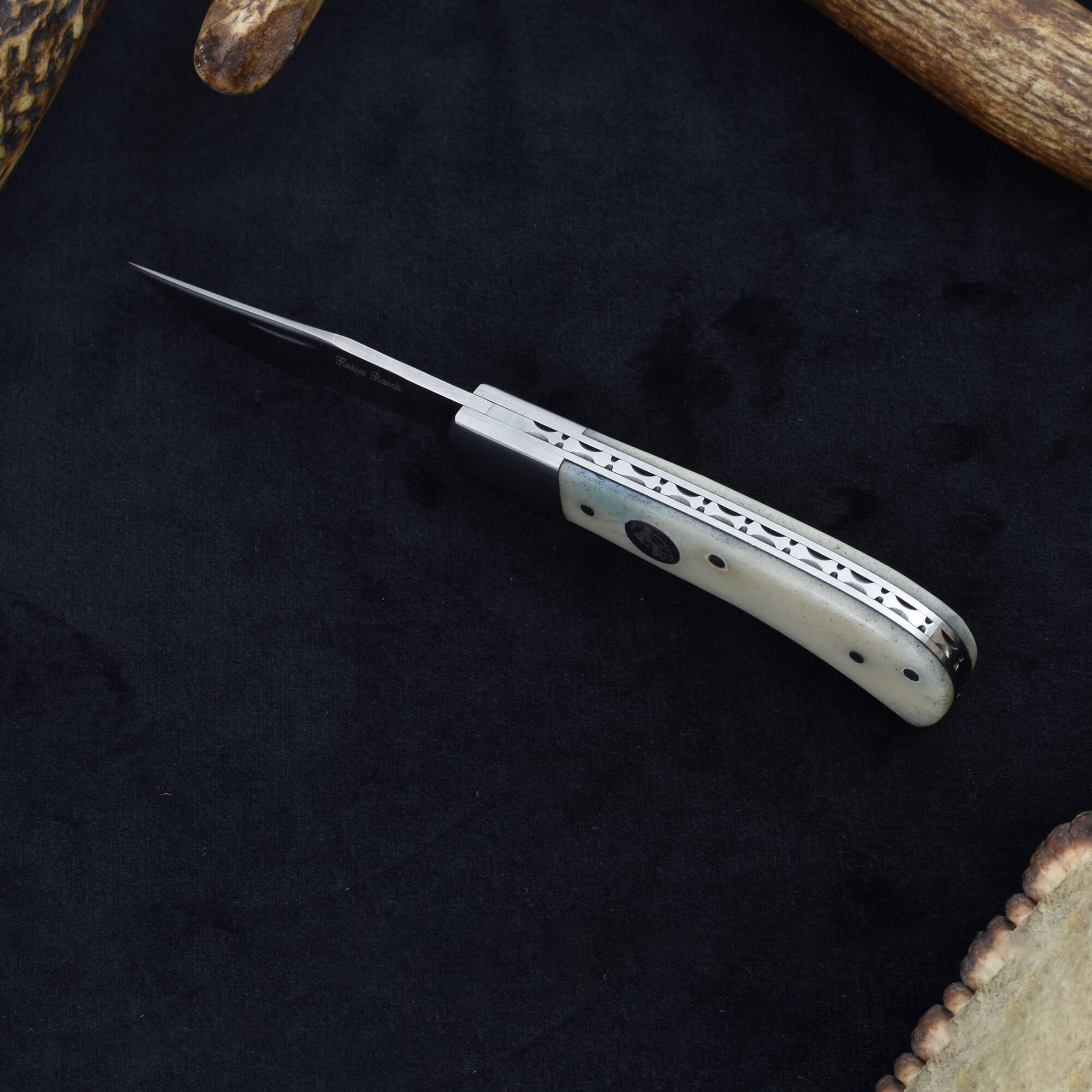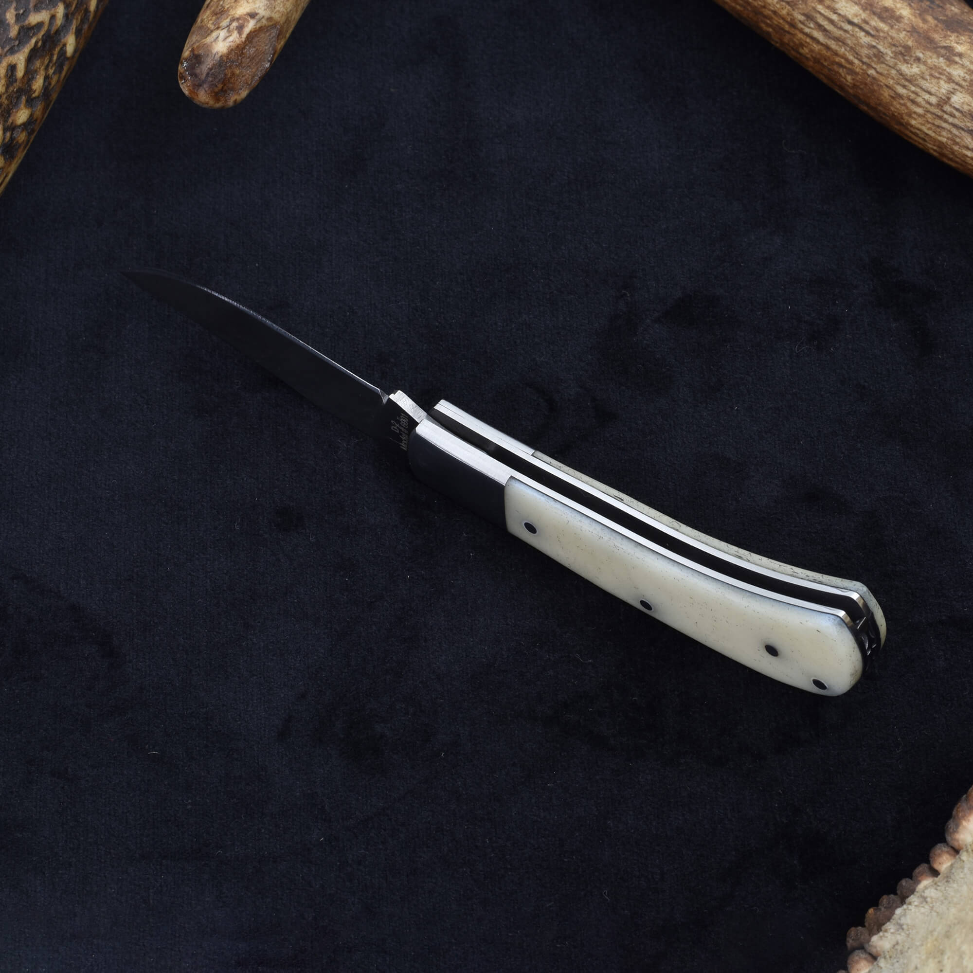 Built for reliability and everyday use, the Knives Ranch Folding Pocket Knife features a 2-5/8” blade crafted from 420-J2 stainless steel, expertly heat-treated in a vacuum furnace for outstanding durability and sharpness. The slip joint mechanism allows smooth operation and safe handling, while the stainless steel bolster adds strength and a refined finish. Fitted with Cattle Bone Handle, it offers a comfortable, stylish, and secure grip. Complete with a Vegetable Tanned Leather belt-mount pouch, this knife ensures safe and convenient carry for any occasion.