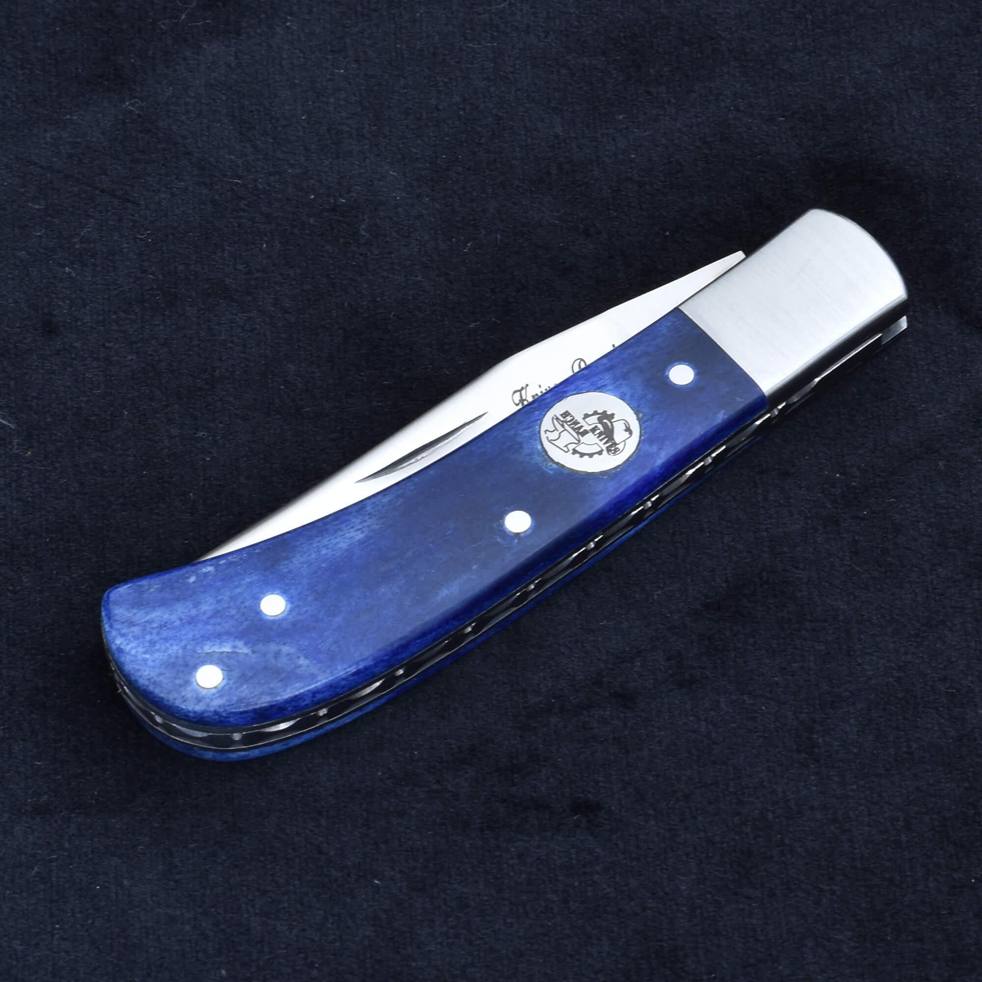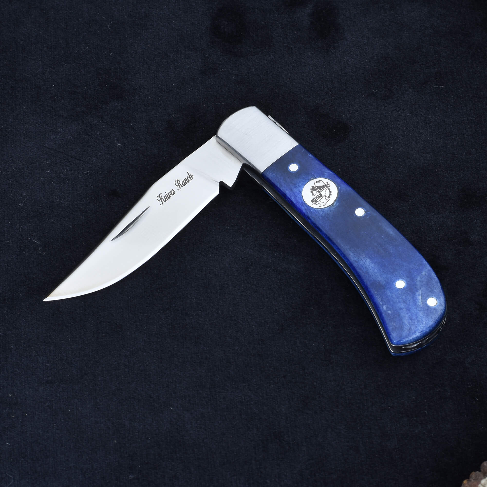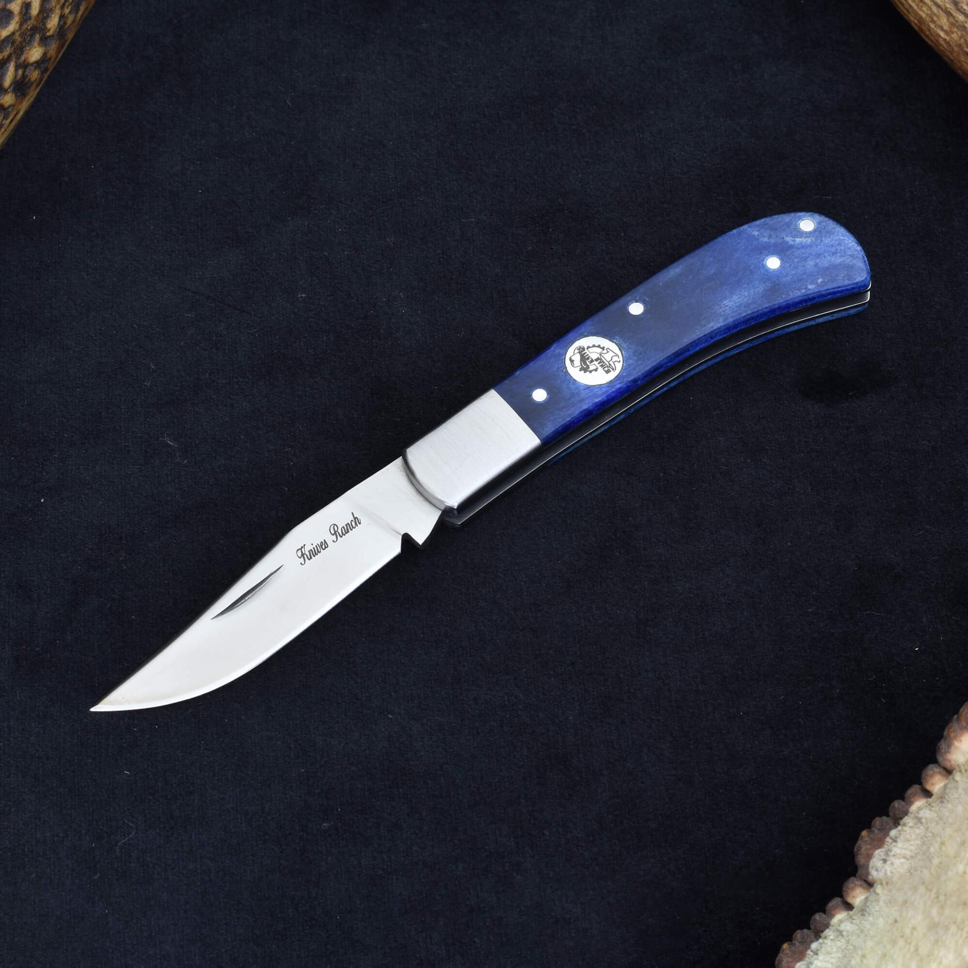 Knives Ranch 420-J2 Stainless Steel Folding Pocket Knife with Blue Dyed Bone Handle and Stainless Steel Bolster